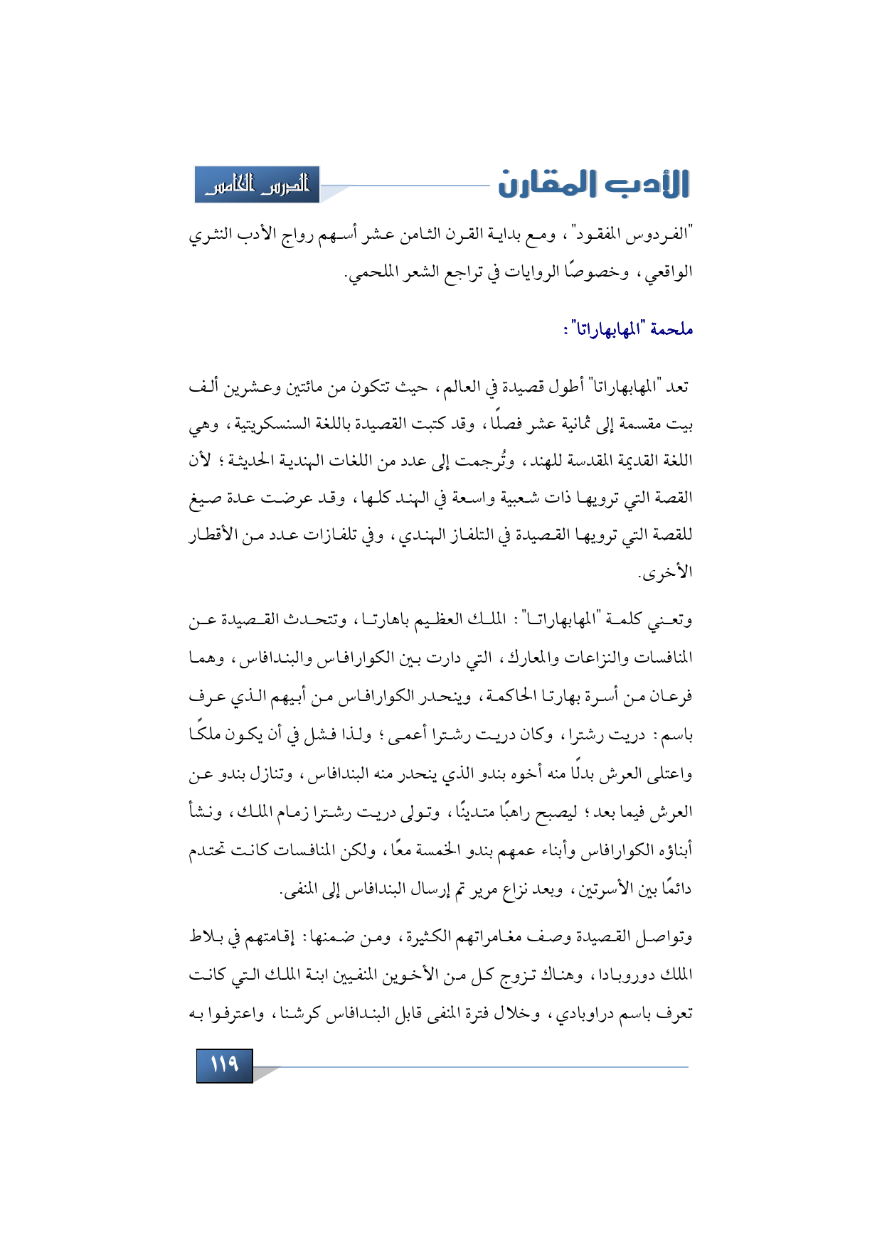 "الفردوس المفقود"، ومع بداية القرن الثامن عشر أسهم رواج الأدب النثري الواقعي، وخصوصًا الروايات في تراجع الشعر الملحمي، وكذلك كَتَبَ الهنود ملحمة "المهابهاراتا"، وتعد "المهابهاراتا" أطول قصيدة في العالم، حيث تتكون من مائتين وعشرين ألف بيت مقسمة إلى ثمانية عشر فصلًا، وقد كتبت القصيدة باللغة السنسكريتية، وهي اللغة القديمة المقدسة للهند، وتُرجمت إلى عدد من اللغات الهندية الحديثة؛ لأن القصة التي ترويها ذات شعبية واسعة في الهند كلها، وقد عرضت عدة صيغ للقصة التي ترويها القصيدة في التلفاز الهندي، وفي تلفازات عدد من الأقطار الأخرى.