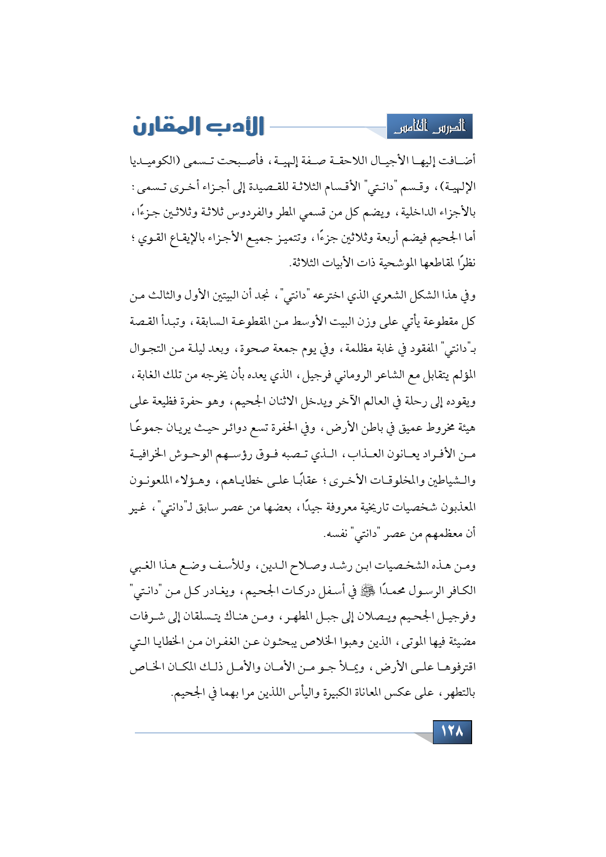 ومن هذه الشخصيات ابن رشد وصلاح الدين، وللأسف وضع هذا الغبي الكافر الرسول محمدًا -عليه الصلاة والسلام- في أسفل دركات الجحيم، ويغادر كل من "دانتي" وفرجيل الجحيم ويصلان إلى جبل المطهر، ومن هناك يتسلقان إلى شرفات مضيئة فيها الموتى، الذين وهبوا الخلاص يبحثون عن الغفران من الخطايا التي اقترفوها على الأرض، ويملأ جو من الأمان والأمل ذلك المكان الخاص بالتطهر، على عكس المعاناة الكبيرة واليأس اللذين مرا بهما في الجحيم.