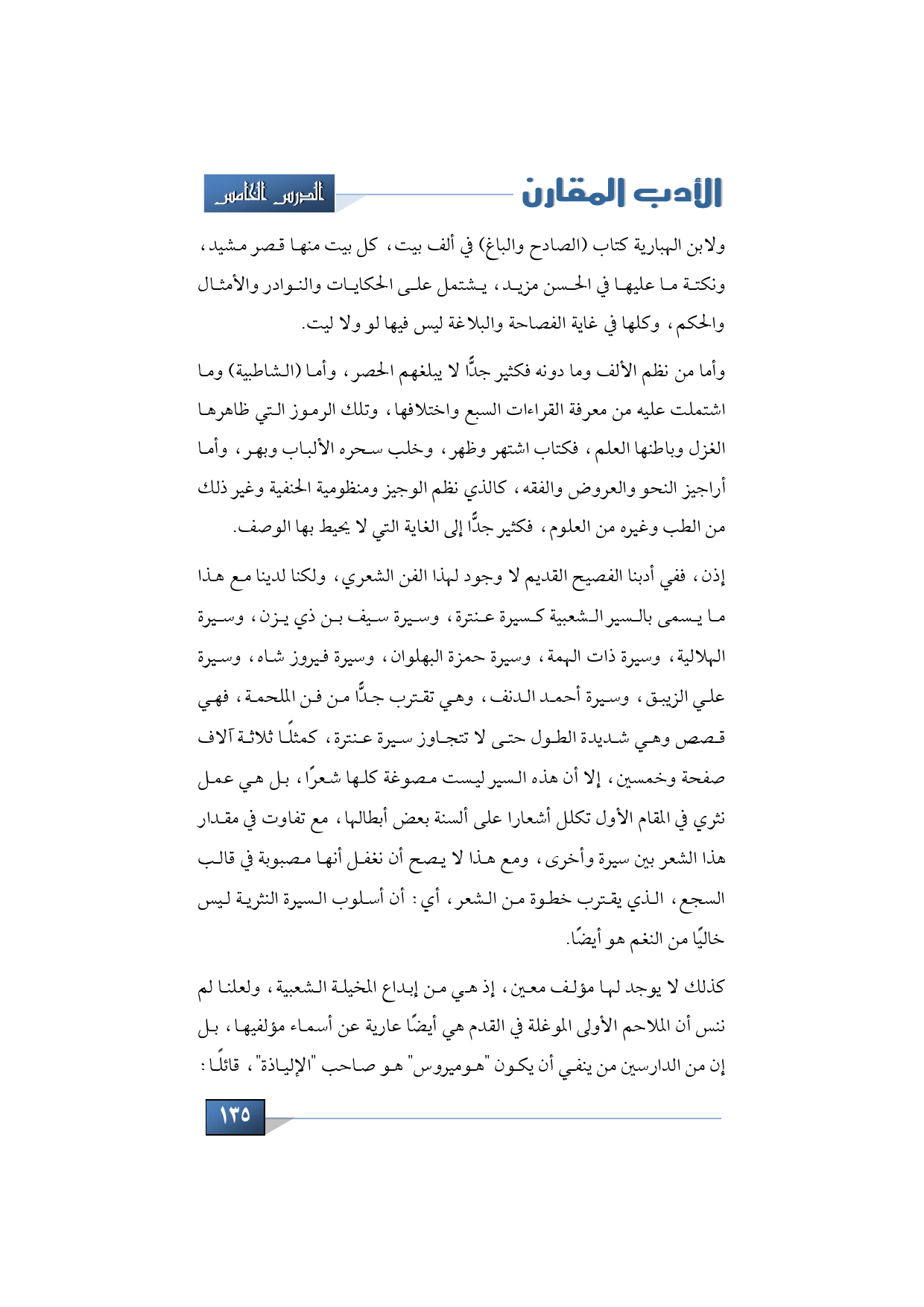 إذن، ففي أدبنا الفصيح القديم لا وجود لهذا الفن الشعري، ولكنا لدينا مع هذا ما يسمى بالسير الشعبية كسيرة عنترة، وسيرة سيف بن ذي يزن، وسيرة الهلالية، وسيرة ذات الهمة، وسيرة حمزة البهلوان، وسيرة فيروز شاه، وسيرة علي الزيبق، وسيرة أحمد الدنف، وهي تقترب جدًّا من فن الملحمة، فهي قصص وهي شديدة الطول حتى لا تتجاوز سيرة عنترة كمثلًا ثلاثة آلاف صفحة وخمسين، إلا أن هذه السير ليست مصوغة كلها شعرًا، بل هي عمل نثري في المقام الأول تكلل أشعار على ألسنة بعض أبطالها، مع تفاوت في مقدار هذا الشعر بين سيرة وأخرى، ومع هذا لا يصح أن نغفل أنها مصبوبة في قالب السجع، الذي يقترب خطوة من الشعر، أي: أن أسلوب السيرة النثرية ليس خاليًا من النغم هو أيضًا.
