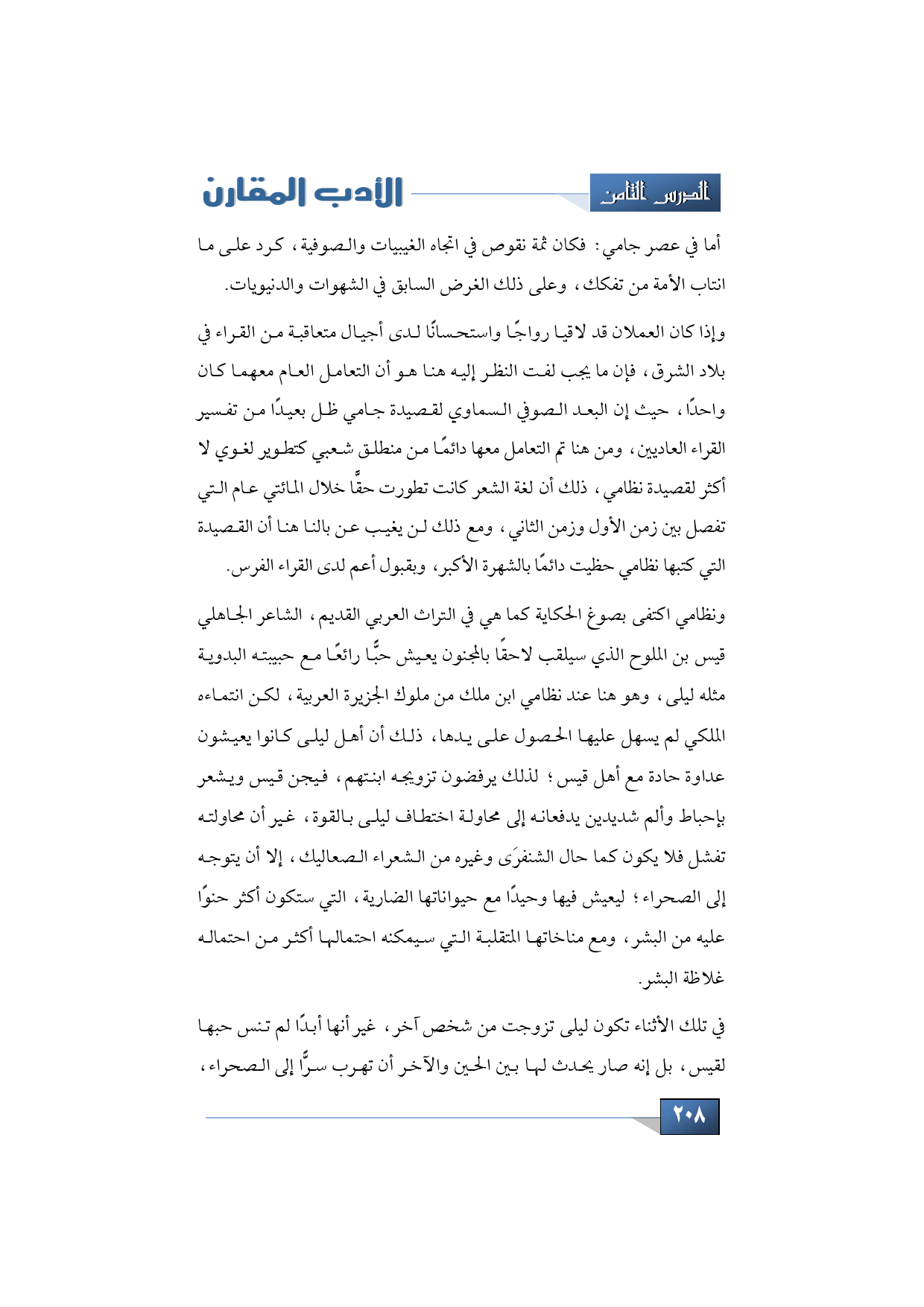 ونظامي اكتفى كما أشرنا بصوغ الحكاية كما هي في التراث العربي القديم، الشاعر الجاهلي قيس بن الملوح الذي سيلقب لاحقًا بالمجنون يعيش حبًّا رائعًا مع حبيبته البدوية مثله ليلى، وهو هنا عند نظامي ابن ملك من ملوك الجزيرة العربية، لكن انتماءه الملكي لم يسهل عليها الحصول على يدها ذلك أن أهل ليلى كانوا يعيشون عداوة حادة مع أهل قيس؛ لذلك يرفضون تزويجه ابنتهم، فيجن قيس ويشعر بإحباط وألم شديدين يدفعانه إلى محاولة اختطاف ليلى بالقوة، غير أن محاولته تفشل فلا يكون كما حال الشنفرَى وغيره من الشعراء الصعاليك، إلا أن يتوجه إلى الصحراء؛ ليعيش فيها وحيدًا مع حيواناتها الضارية، التي ستكون أكثر حنوًا عليه من البشر، ومع مناخاتها المتقلبة التي سيمكنه احتمالها أكثر من احتماله غلاظة البشر.