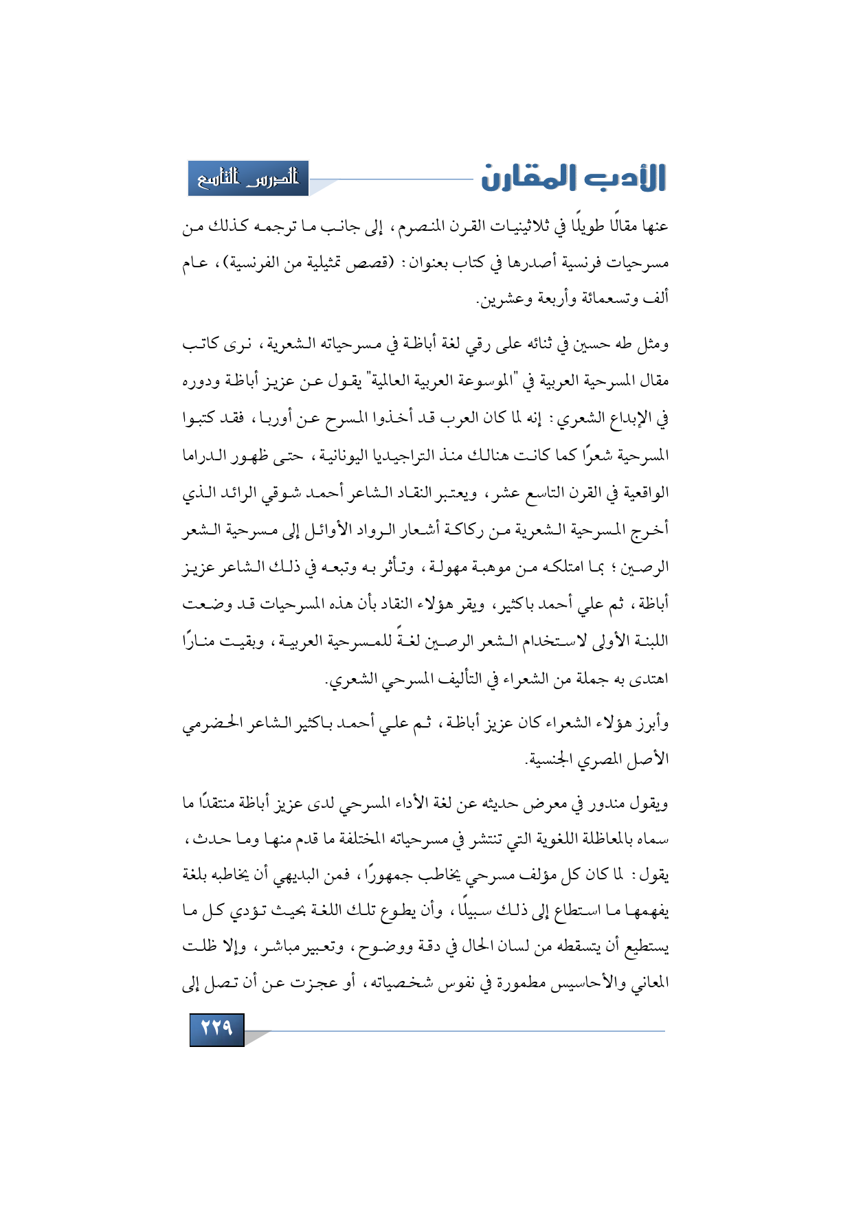 عنها مقالًا طويلًا في ثلاثينيات القرن المنصرم إلى جانب ما ترجمه كذلك من مسرحيات فرنسية أصدرها في كتاب بعنوان (قصص تمثيلية من الفرنسية)، عام ألف وتسعمائة وأربعة وعشرين.