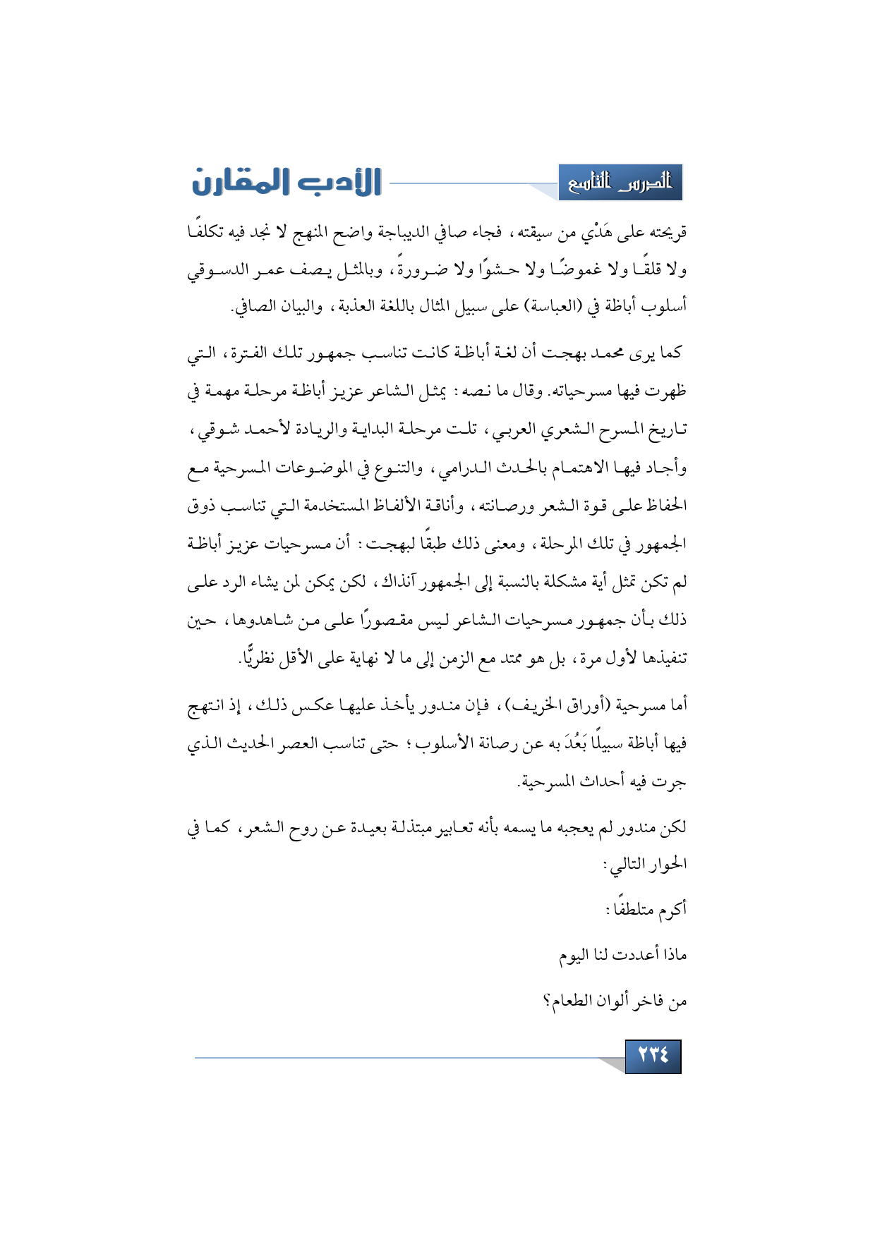 لكن مندور لم يعجبه ما يسمه بأنه تعابير مبتذلة بعيدة عن روح الشعر، كما في الحوار التالي: