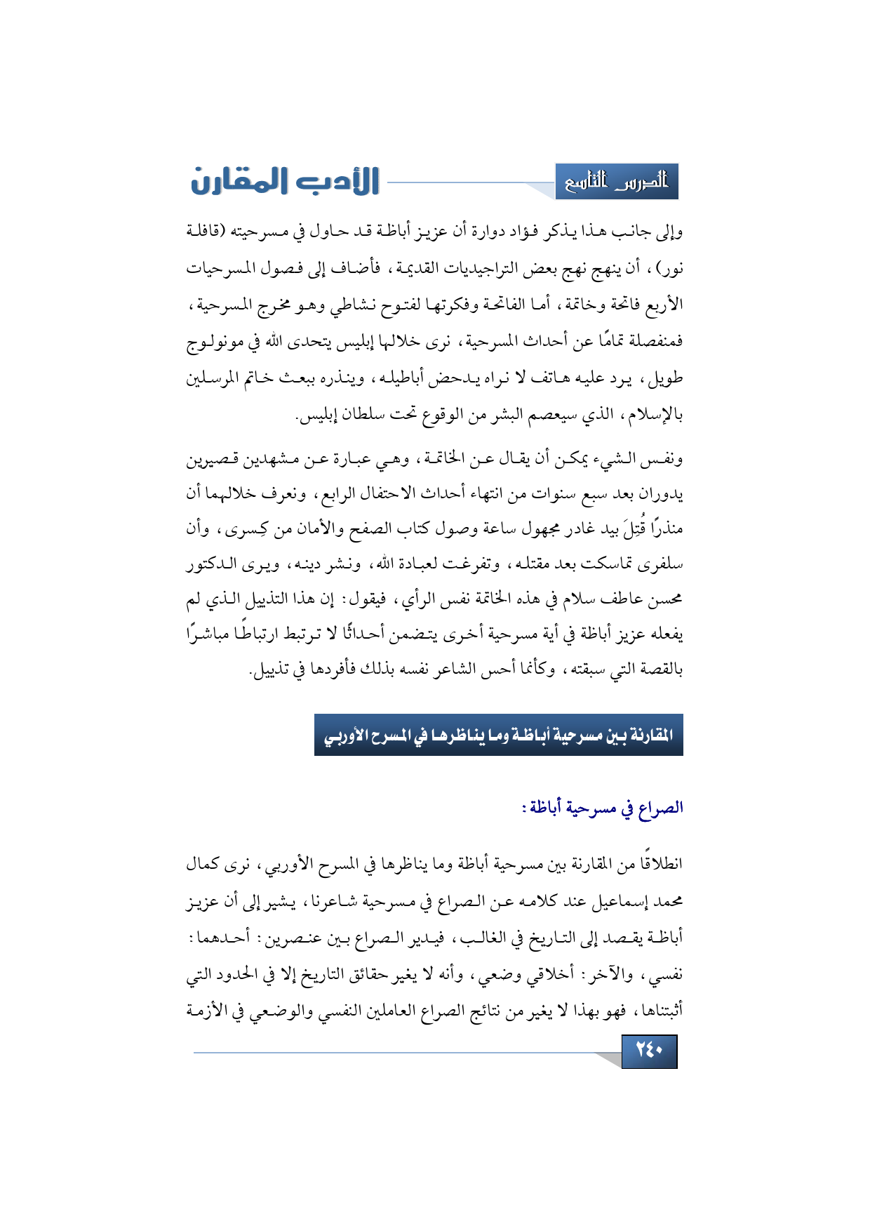 المقارنة بين مسرحية أباظة وما يناظرها في المسرح الأوربي
