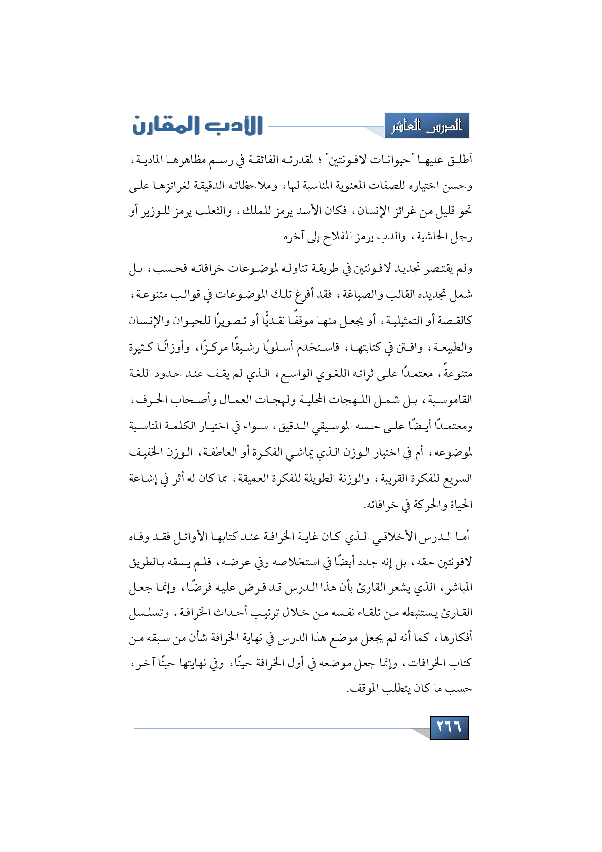 أطلق عليها "حيوانات لافونتين"؛ لمقدرته الفائقة في رسم مظاهرها المادية، وحسن اختياره للصفات المعنوية المناسبة لها، وملاحظاته الدقيقة لغرائزها على نحو قليل من غرائز الإنسان، فكان الأسد يرمز للملك والثعلب يرمز للوزير أو رجل الحاشية، والدب يرمز للفلاح إلى آخره.