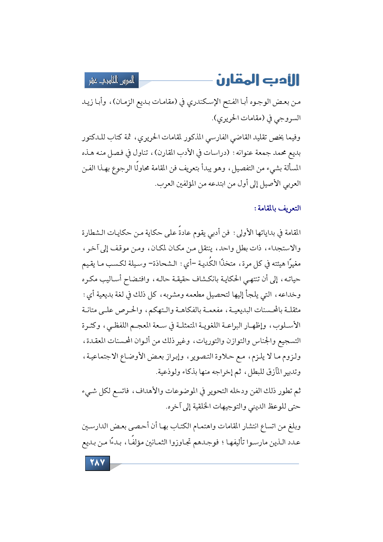 وفيما يخص تقليد القاضي الفارسي المذكور لمقامات الحريري ثمة كتاب للدكتور بديع محمد جمعة عنوانه (دراسات في الأدب المقارن)، تناول في فصل منه هذه المسألة بشيء من التفصيل، وهو يبدأ بتعريف فن المقامة محاولًا الرجوع بهذا الفن العربي الأصيل إلى أول من ابتدعه من المؤلفين العرب.