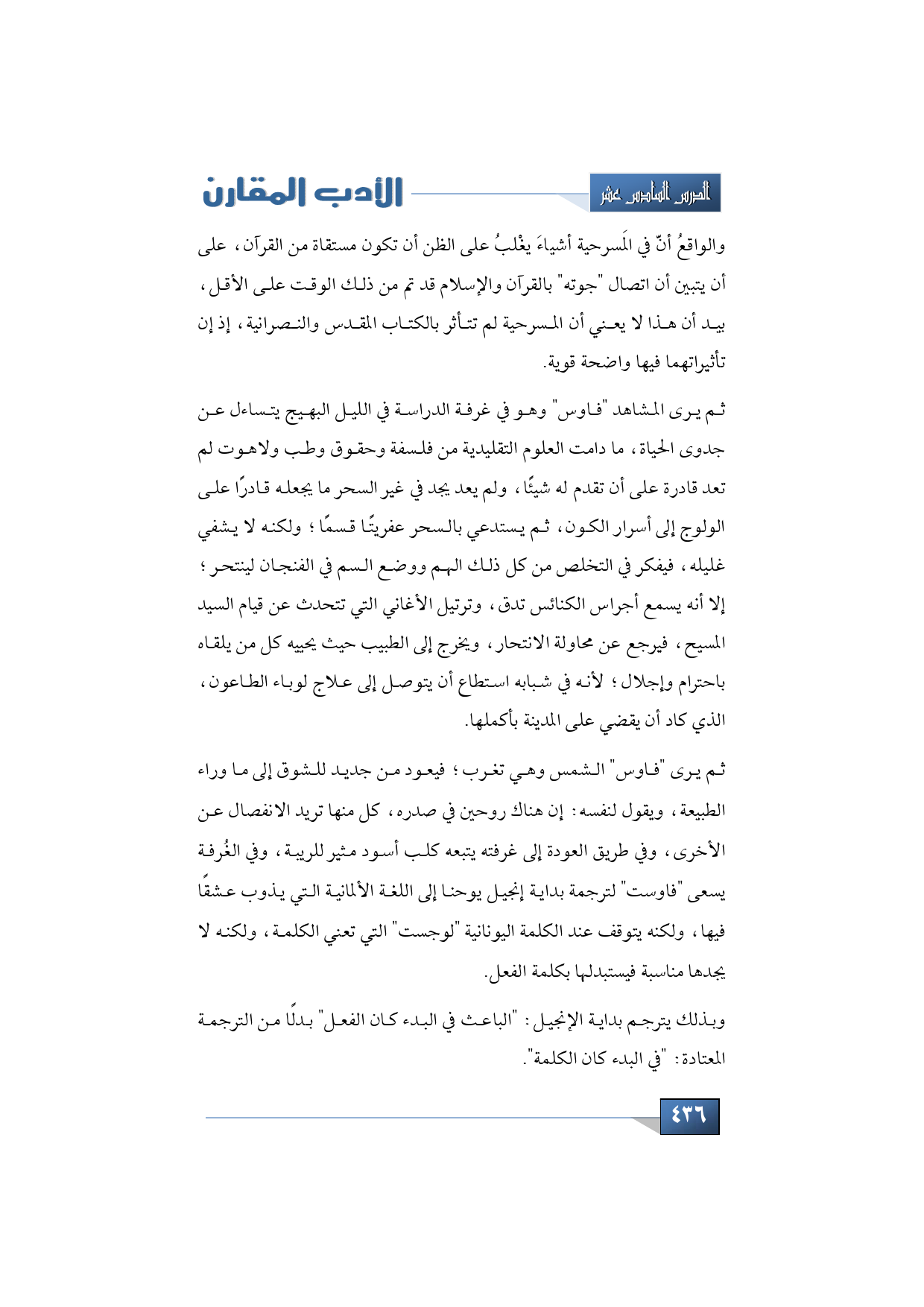 والواقعُ أنّ في المَسرحية أشياءَ يغْلبُ على الظن أن تكون مستقاة من القرآن، على أن يتبين أن اتصال "جوته" بالقرآن والإسلام قد تم من ذلك الوقت على الأقل، بيد أن هذا لا يعني أن المسرحية لم تتأثر بالكتاب المقدس والنصرانية، إذ إن تأثيراتهما فيها واضحة قوية.