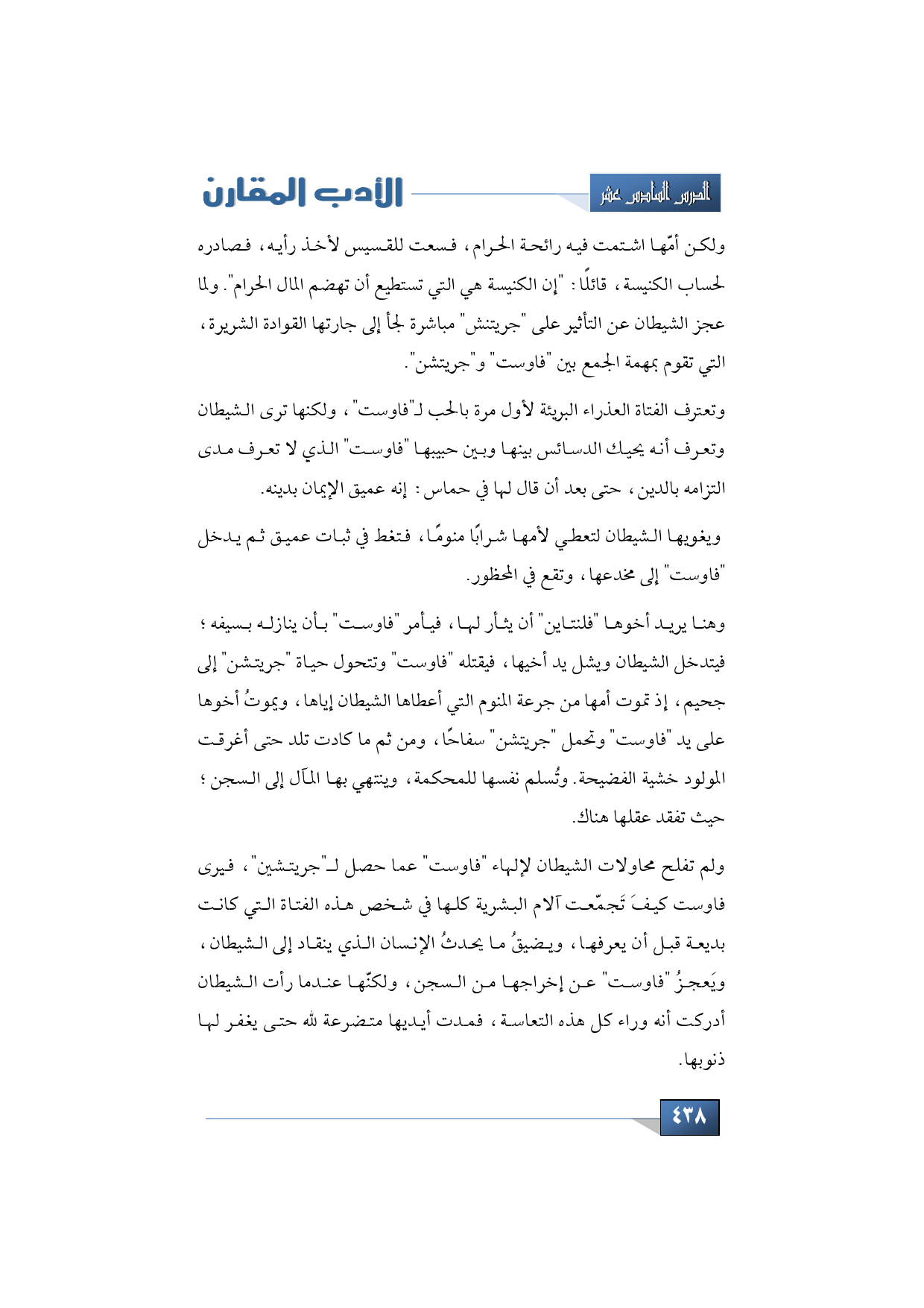 ولكن أمّها اشتمت فيه رائحة الحرام، فسعى للقسيس لأخذ رأيه، فصادره لحساب الكنيسة، قائلًا: "إن الكنيسة هي التي تستطيع أن تهضم المال الحرام". ولما عجز الشيطان عن التأثير على "جريتنش" مباشرة لجأ إلى جارتها القوادة الشريرة، التي تقوم بمهمة الجمع بين "فاوست" و"جريتشن".