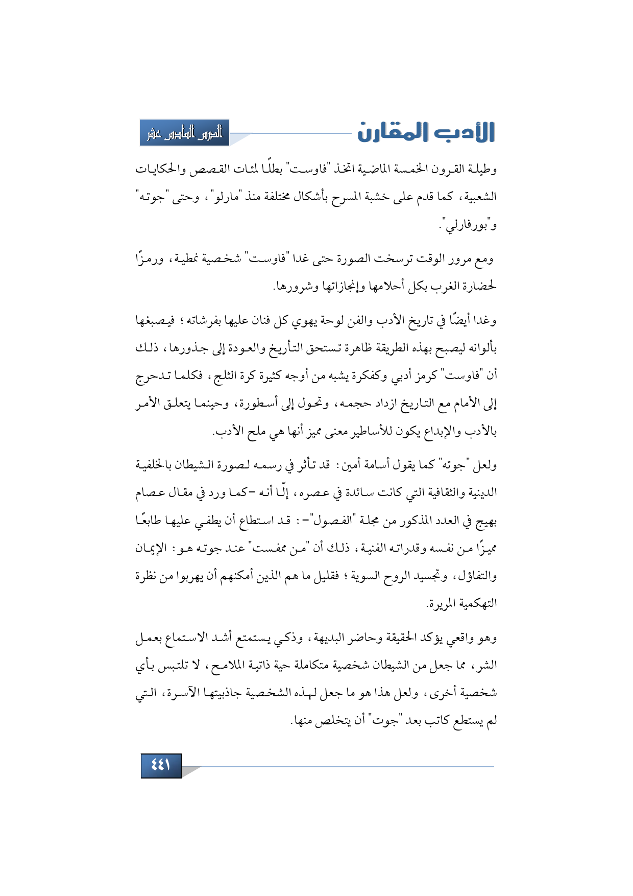 وغدا أيضًا في تاريخ الأدب والفن لوحة يهوي كل فنان عليها بفرشاته؛ فيصبغها بألوانه ليصبح بهذه الطريقة ظاهرة تستحق التأريخ والعودة إلى جذورها، ذلك أن "فاوست" كرمز أدبي وكفكرة يشبه من أوجه كثيرة كرة الثلج، فكلما تدحرج إلى الأمام مع التاريخ ازداد حجمه، وتحول إلى أسطورة، وحينما يتعلق الأمر بالأدب والإبداع يكون الأساطير معنى مميز أنها هي ملح الأدب.