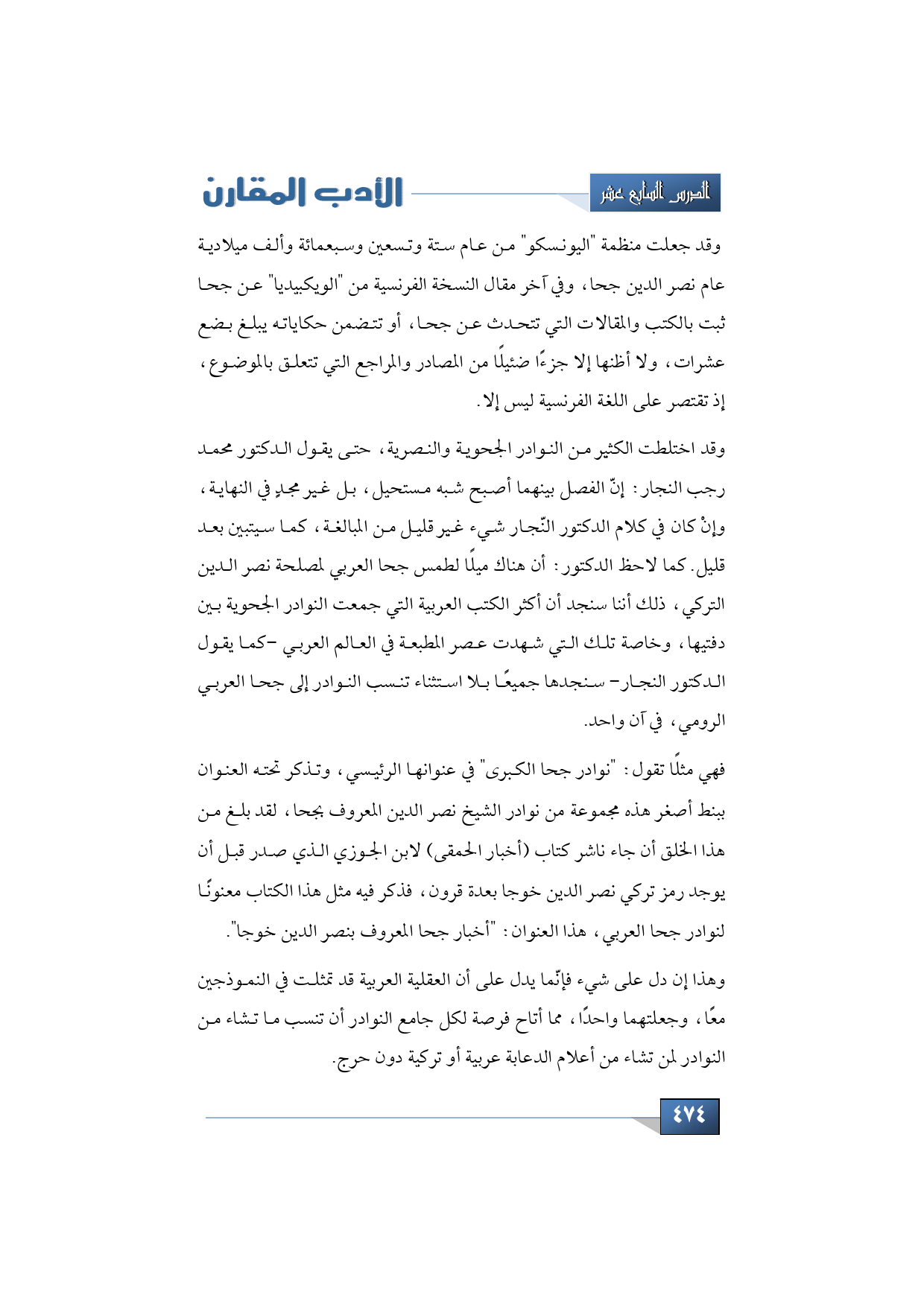 وهكذا وقد جعلت منظمة "اليونسكو" من عام ستة وتسعين وسبعمائة وألف ميلادية عام نصر الدين جحا، وفي آخر مقال النسخة الفرنسية من "الويكبيديا" عن جحا ثبتٌ بالكتب والمقالات التي تتحدث عن جحا، أو تتضمن حكاياته يبلغ بضع عشرات، ولا أظنها إلا جزءًا ضئيلًا من المصادر والمراجع التي تتعلق بالموضوع، إذ تقتصر على اللغة الفرنسية ليس إلا.