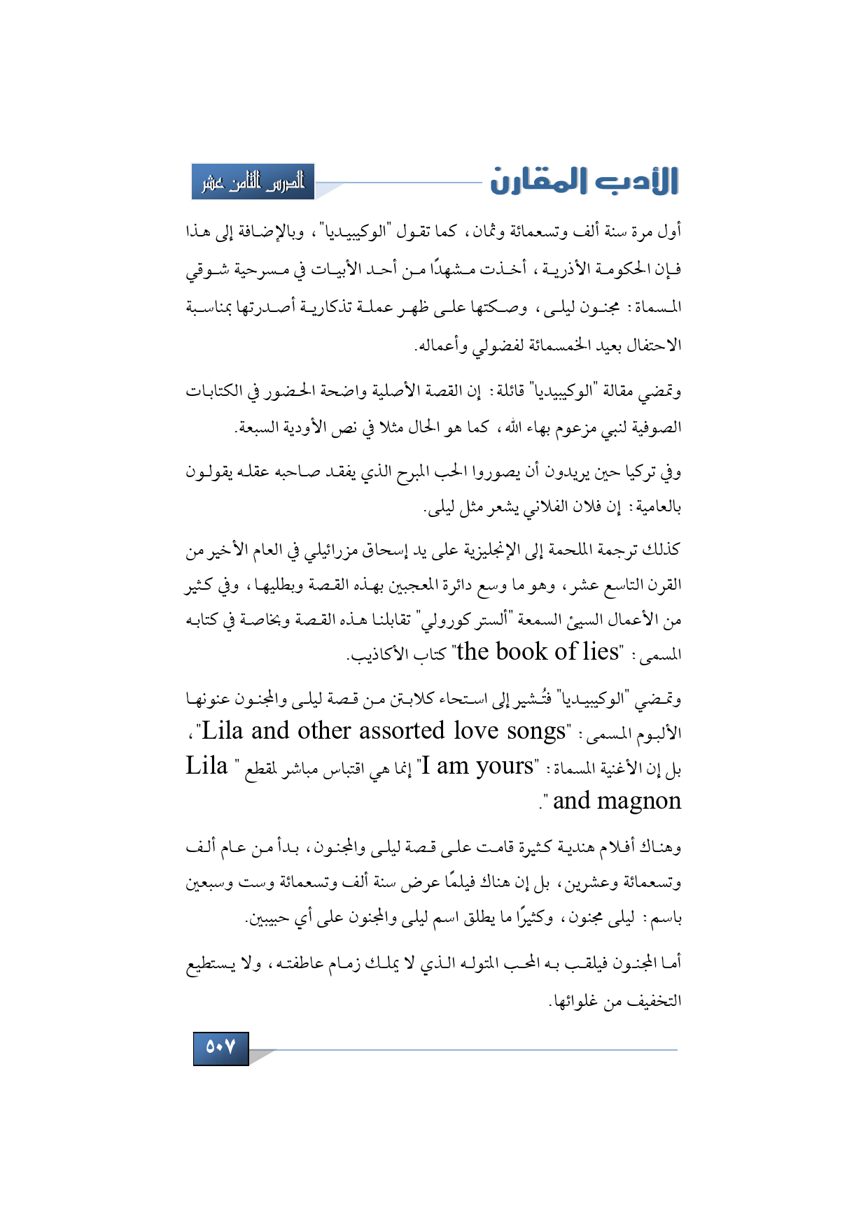 وفي تركيا حين يريدون أن يصوروا الحب المبرح الذي يفقد صاحبه عقله يقولون بالعامية: إن فلان الفلاني يشعر مثل ليلى.