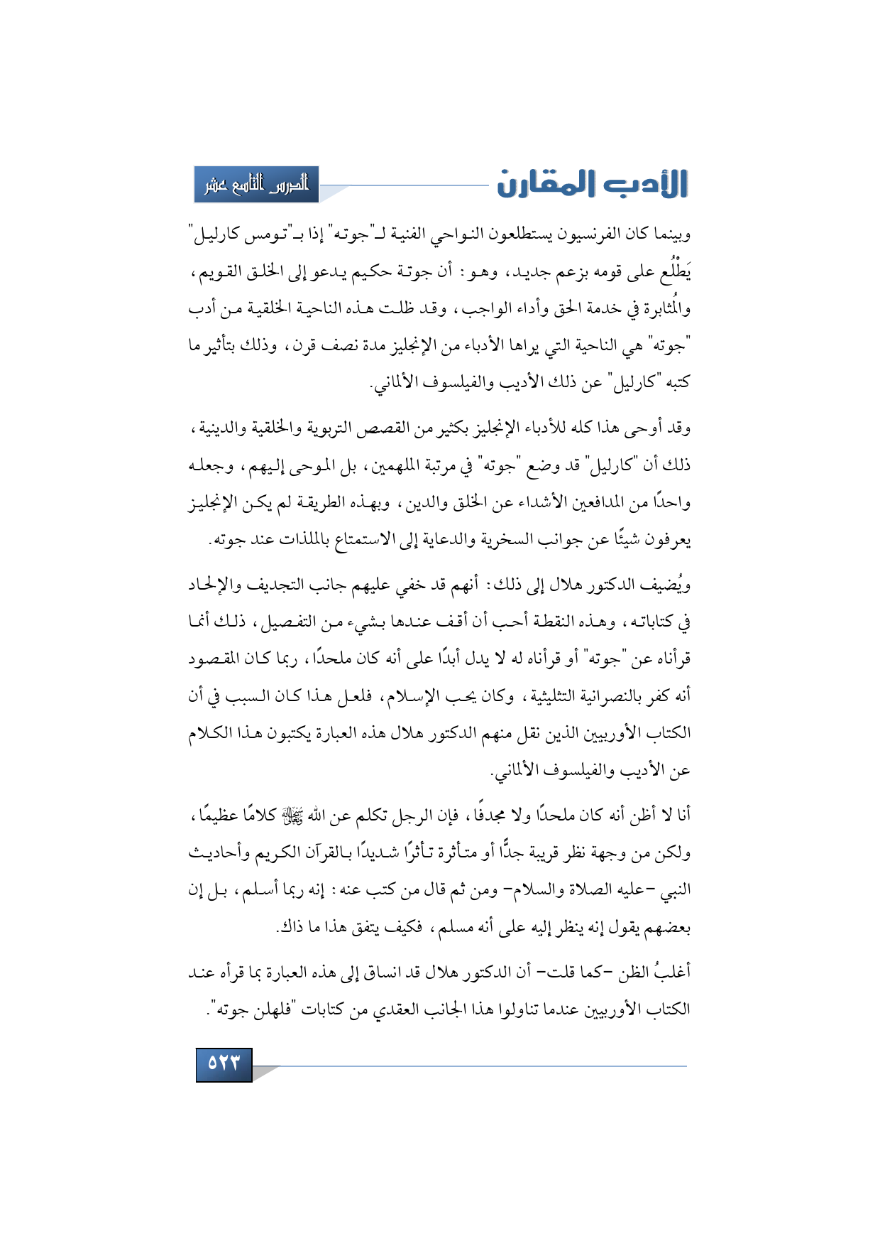 أغلبُ الظن -كما قلت- أن الدكتور هلال قد انساق إلى هذه العبارة بما قرأه عند الكتاب الأوربيين عندما تناولوا هذا الجانب العقدي من كتابات "فلهلن جوته".