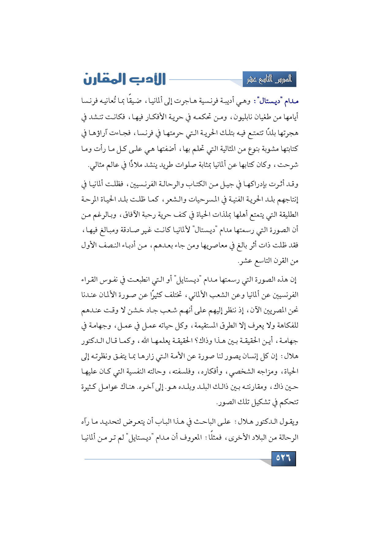 ويقول الدكتور هلال: على الباحث في هذا الباب أن يتعرض لتحديد ما رآه الرحالة من البلاد الأخرى، فمثلًا: المعروف أن مدام "ديستايل" لم تر من ألمانيا