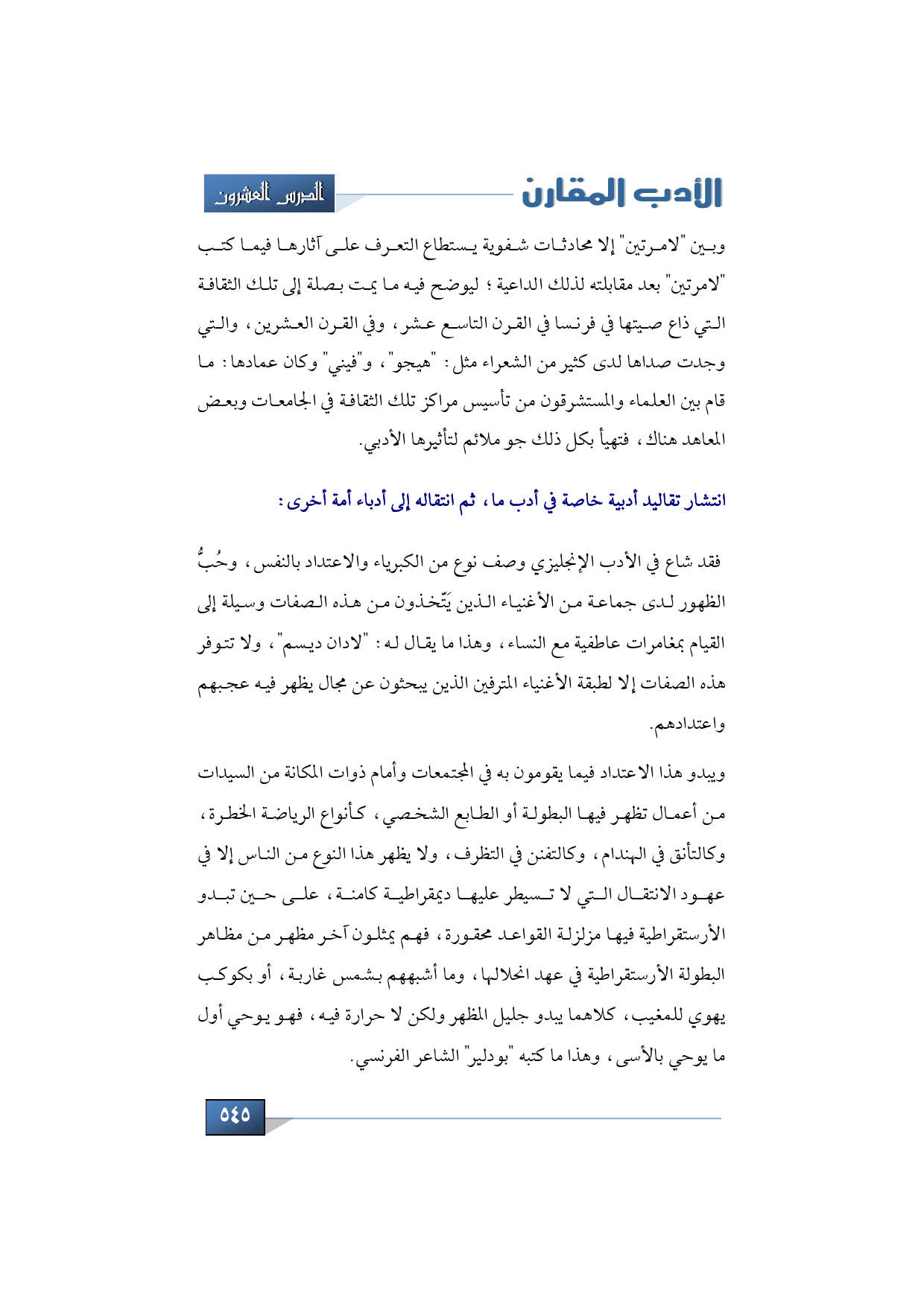 وبين "لامرتين" إلا محادثات شفوية يستطاع التعرف على آثارها فيما كتب "لامرتين" بعد مقابلته لذلك الداعية؛ ليوضح فيه ما يمت بصلة إلى تلك الثقافة التي ذاع صيتها في فرنسا في القرن التاسع عشر، وفي القرن العشرين، والتي وجدت صداها لدى كثير من الشعراء مثل "هيجو"، و"فيني" وكان عمادها ما قام بين العلماء والمستشرقون من تأسيس مراكز تلك الثقافة في الجامعات وبعض المعاهد هناك، فتهيئ بكل ذلك جو ملائم لتأثيرها الأدبي.