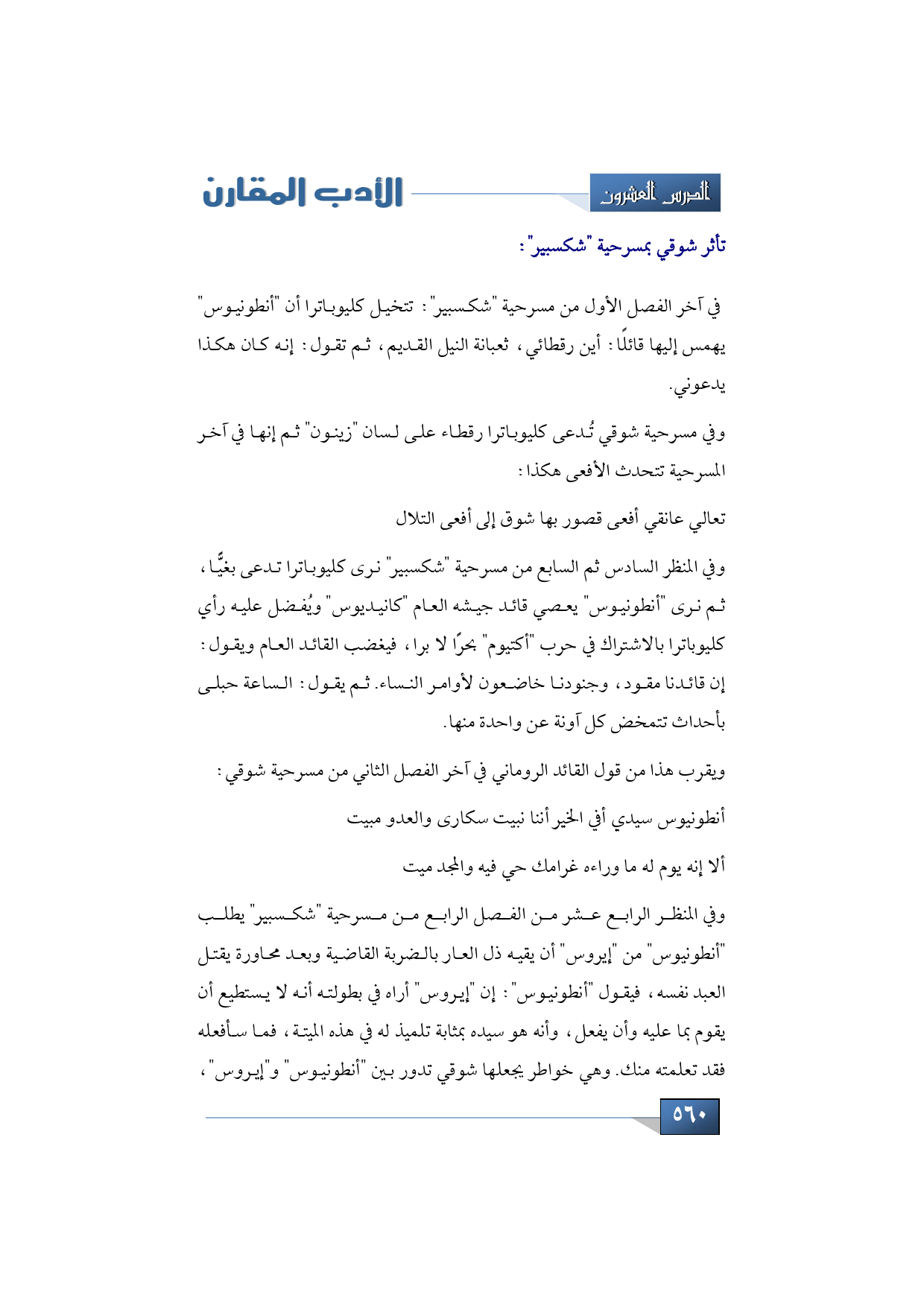 ويقرب هذا من قول القائد الروماني في آخر الفصل الثاني من مسرحية شوقي: