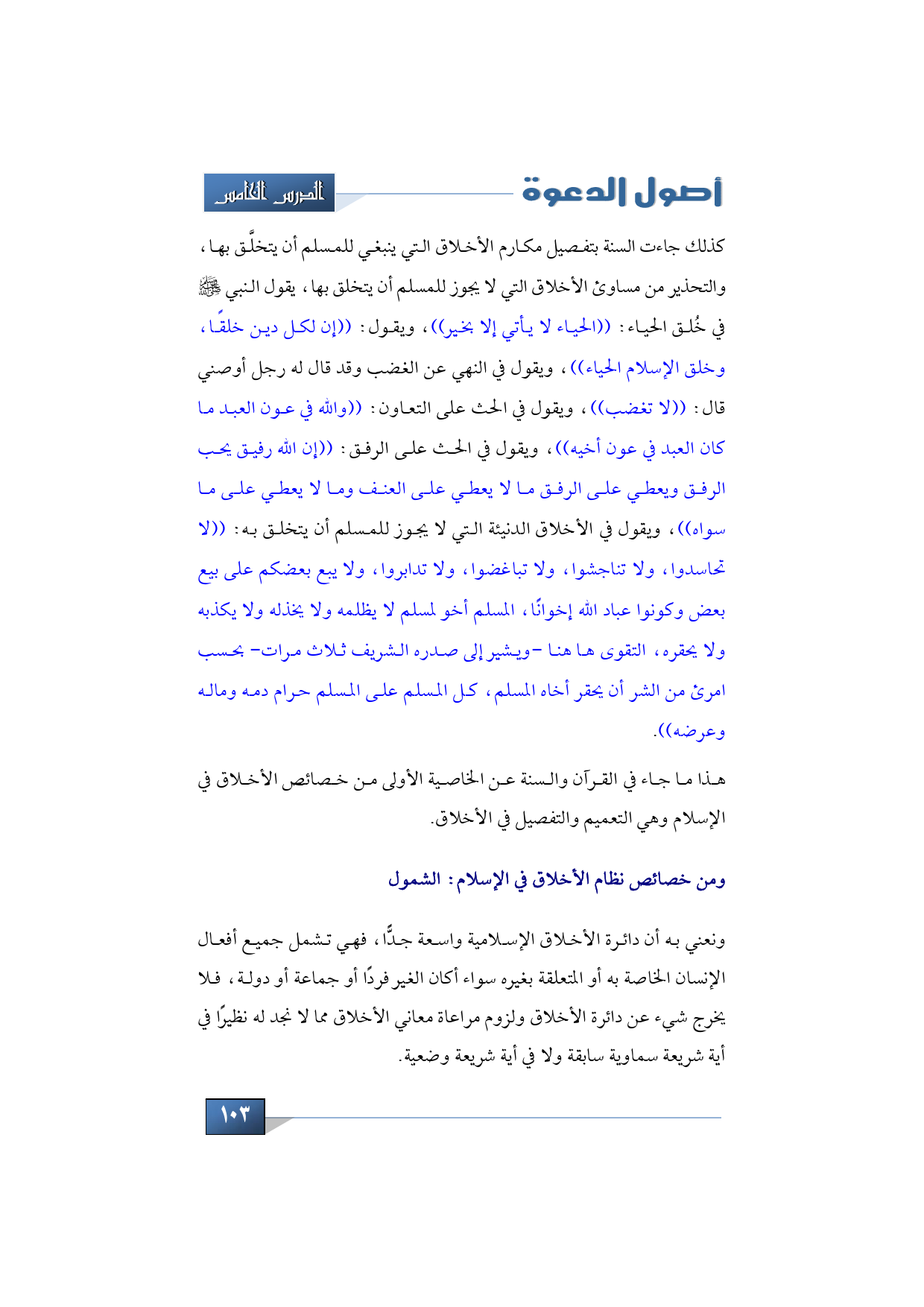 هذا ما جاء في القرآن والسنة عن الخاصية الأولى من خصائص الأخلاق في الإسلام وهي التعميم والتفصيل في الأخلاق.