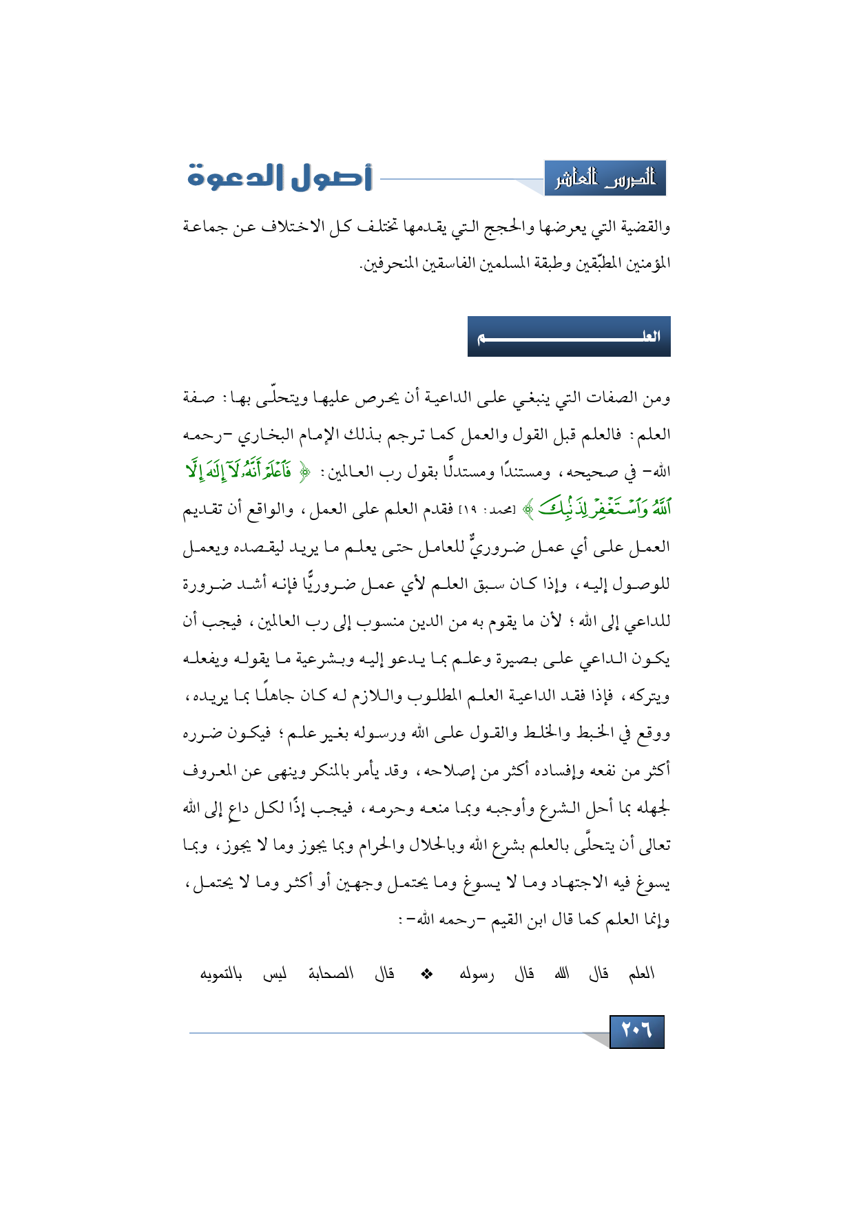 العلم قال الله قال رسوله ... قال الصحابة ليس بالتمويه