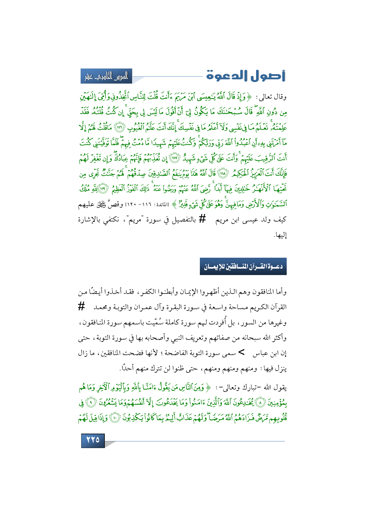 وأما المنافقون وهم الذين أظهروا الإيمان وأبطنوا الكفر، فقد أخذوا أيضًا من القرآن الكريم مساحة واسعة في سورة البقرة وآل عمران والتوبة ومحمد -عليه السلام- وغيرها من السور، بل أُفردت لهم سورة كاملة سُمّيت باسمهم سورة المنافقون، وأكثر الله سبحانه من صفاتهم وتعريف النبي وأصحابه بها في سورة التوبة، حتى إن ابن عباس -رضي الله عنه- سمى سورة التوبة الفاضحة؛ لأنها فضحت المنافقين، ما زال ينزل فيها: ومنهم ومنهم ومنهم، حتى ظنوا لن تترك منهم أحدًا.