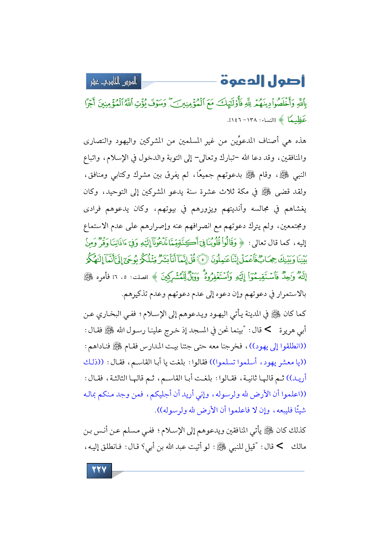بِاللَّهِ وَأَخْلَصُوا دِينَهُمْ لِلَّهِ فَأُولَئِكَ مَعَ الْمُؤْمِنِينَ وَسَوْفَ يُؤْتِ اللَّهُ الْمُؤْمِنِينَ أَجْرًا عَظِيمًا} (النساء: 138 - 146).