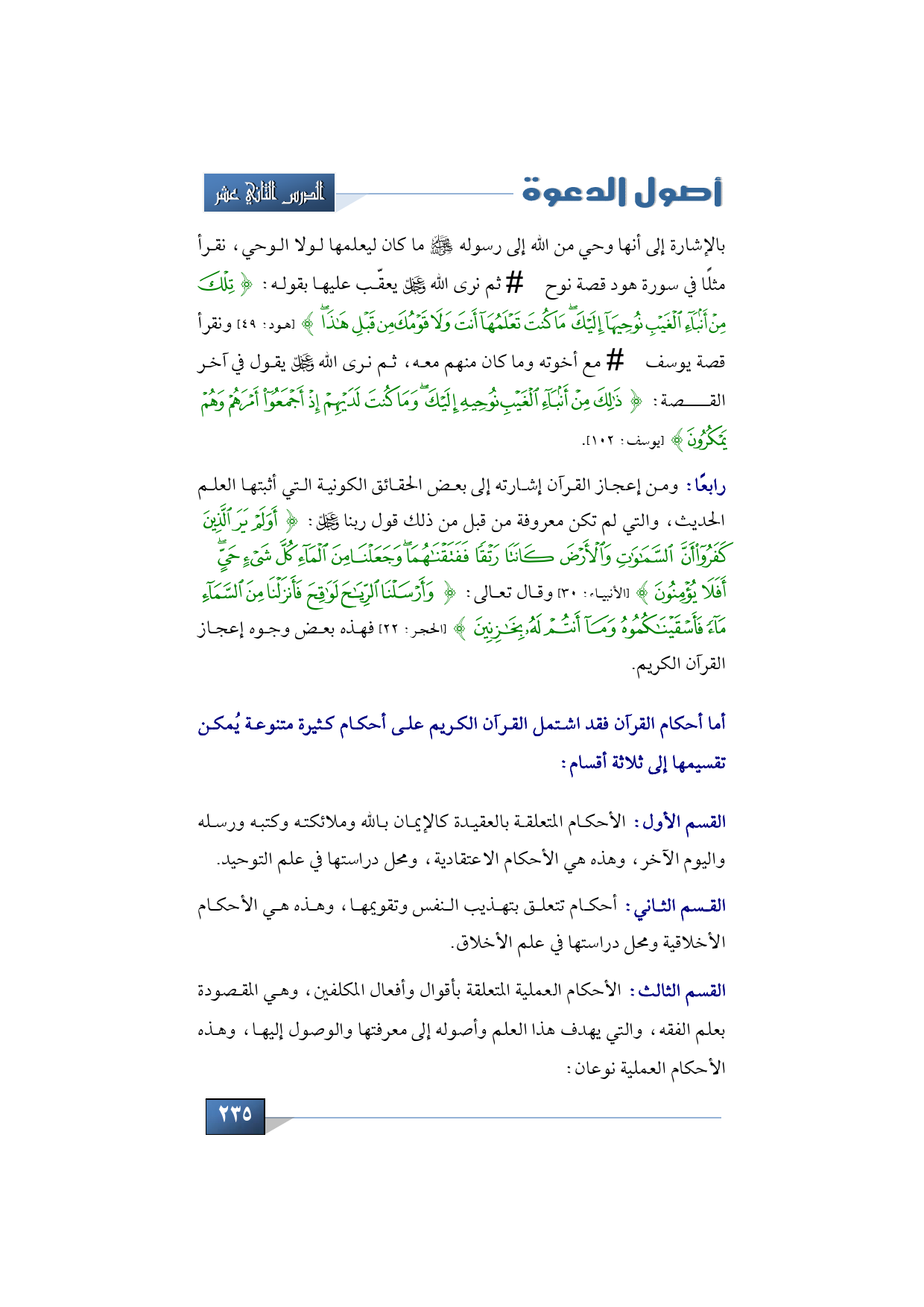 أما أحكام القرآن فقد اشتمل القرآن الكريم على أحكام كثيرة متنوعة ي ُ مكن تقسيمها إلى ثلاثة أقسام: