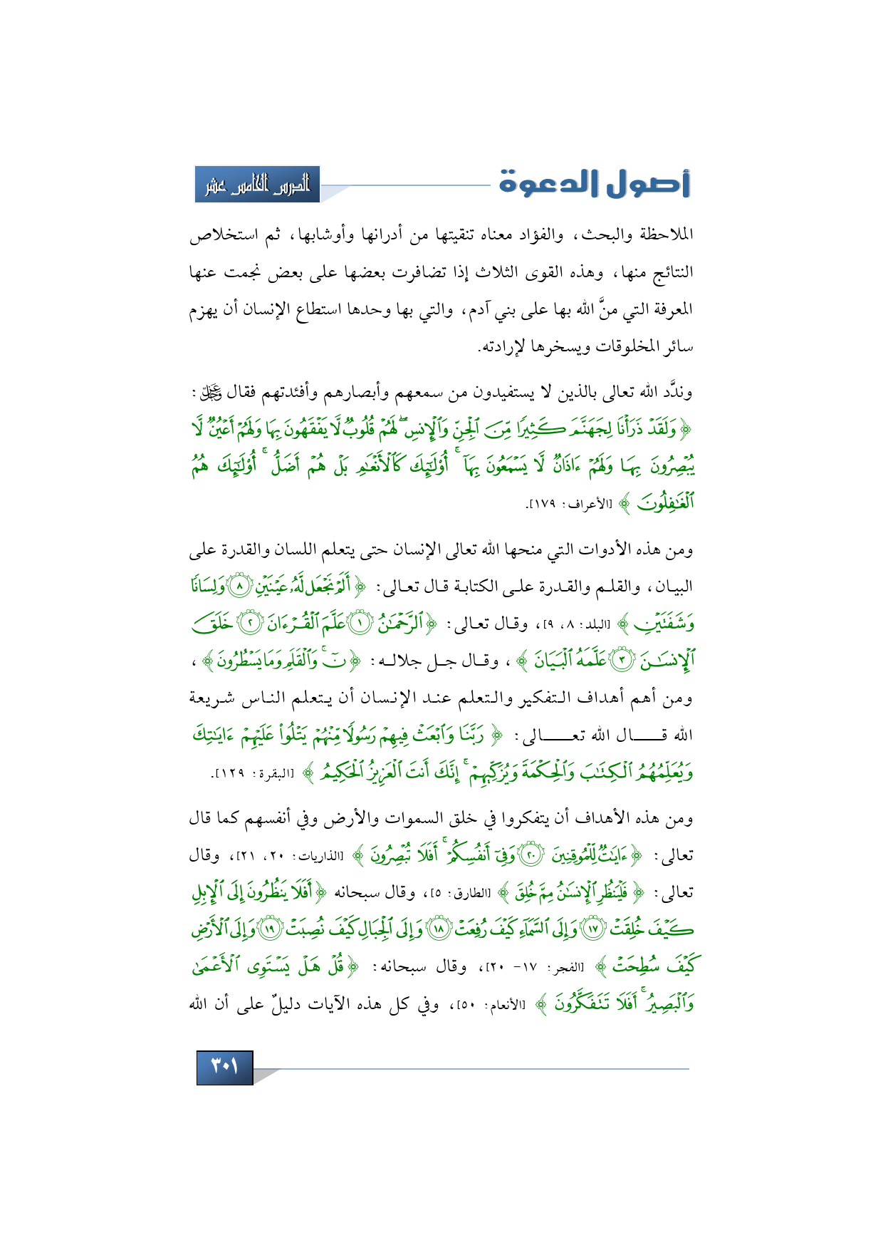 وندَّد الله تعالى بالذين لا يستفيدون من سمعهم وأبصارهم وأفئدتهم فقال عز وجل: {وَلَقَدْ ذَرَأْنَا لِجَهَنَّمَ كَثِيرًا مِنْ الْجِنِّ وَالإِنسِ لَهُمْ قُلُوبٌ لا يَفْقَهُونَ بِهَا لَهُمْ قُلُوبٌ لا يَفْقَهُونَ بِهَا وَلَهُمْ أَعْيُنٌ لا يُبْصِرُونَ بِهَا وَلَهُمْ آذَانٌ لا يَسْمَعُونَ بِهَا أُوْلَئِكَ كَالأَنْعَامِ بَلْ هُمْ أَضَلُّ أُوْلَئِكَ هُمْ الْغَافِلُونَ} (الأعراف: 179).