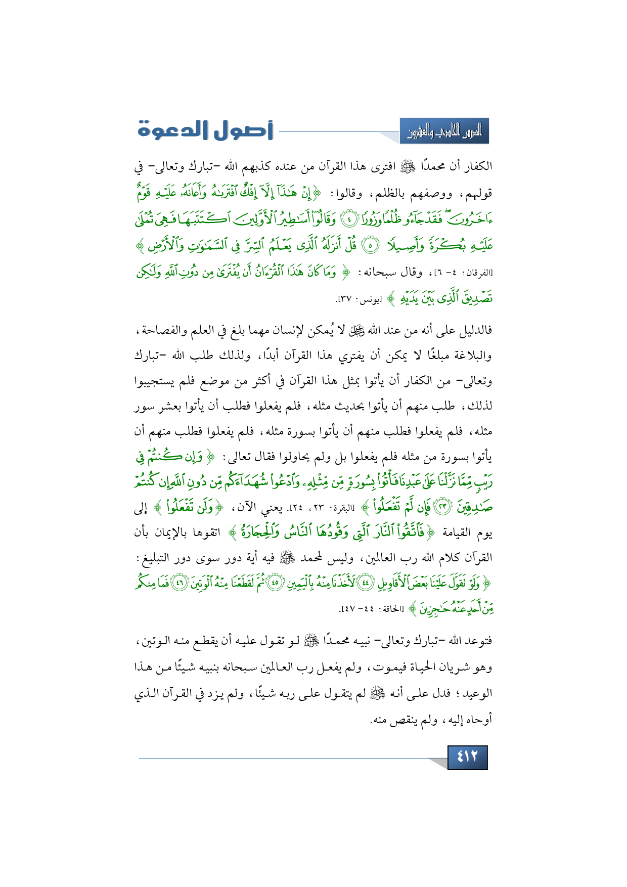 الكفار أن محمدًا -صلى الله عليه وسلم- افترى هذا القرآن من عنده كذبهم الله -تبارك وتعالى- في قولهم، ووصفهم بالظلم، وقالوا: {إِنْ هَذَا إِلَّا إِفْكٌ افْتَرَاهُ وأَعَانَهُ عَلَيْهِ قَوْمٌ آخَرُونَ فَقَدْ جَاءُوا ظُلْمًا وزُورًا * وقَالُوا أَسَاطِيرُ الْأَوَّلِينَ اكْتَتَبَهَا فَهِيَ تُمْلَى عَلَيْهِ بُكْرَةً وأَصِيلًا * قُلْ أَنْزَلَهُ الَّذِي يَعْلَمُ السِّرَّ فِي السَّمَاوَاتِ والْأَرْضِ} (الفرقان: 4 - 6)، وقال سبحانه: {وَمَا كَانَ هَذَا الْقُرْآنُ أَنْ يُفْتَرَى مِنْ دُونِ اللَّهِ ولَكِنْ تَصْدِيقَ الَّذِي بَيْنَ يَدَيْهِ} (يونس: 37).