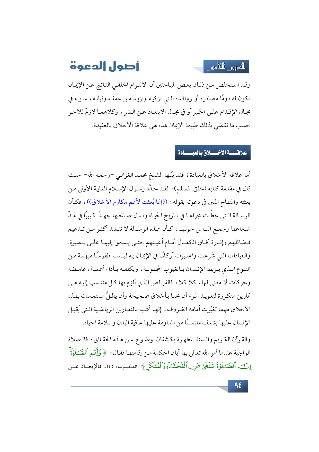 والقرآن الكريم والسنة المطهرة يكشفان بوضوح عن هذه الحقائق؛ فالصلاة الواجبة عندما أمر الله تعالى بها أبان الحكمة من إقامتها فقال: {وَأَقِمِ الصَّلَاةَ إِنَّ الصَّلَاةَ تَنْهَى عَنِ الْفَحْشَاءِ وَالْمُنْكَرِ} (العنكبوت: 45)، فالإبعاد عن