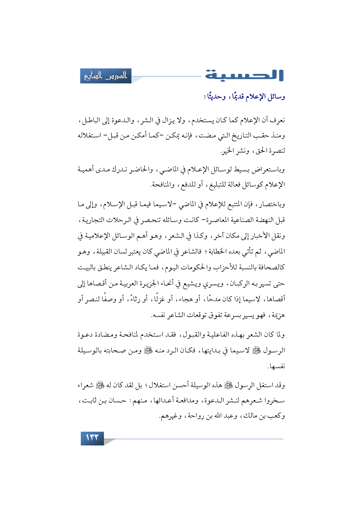 وباختصار، فإن المتتبع للإعلام في الماضي -لا سيما فيما قبل الإسلام، وإلى ما قبل النهضة الصناعية المعاصرة- كانت وسائله تنحصر في الرحلات التجارية، ونقل الأخبار إلى مكان آخر، وكذا في الشعر، وهو أهم الوسائل الإعلامية في الماضي، ثم تأتي بعده خطابه، فالشاعر في الماضي كان يعتبر لسان القبيلة، وهو كالصحافة بالنسبة للأحزاب والحكومات اليوم، فما يكاد الشاعر ينطق بالبيت حتى تسير به الركبان، ويسري ويشيع في أنحاء الجزيرة العربية من أقصاها إلى أقصاها، لا سيما إذا كان مدحًا أو هجاء، أو غزلًا أو رثاء أو وصفًا لنصر أو هزيمة، فهو يسير بسرعة تفوق توقعات الشاعر نفسه.