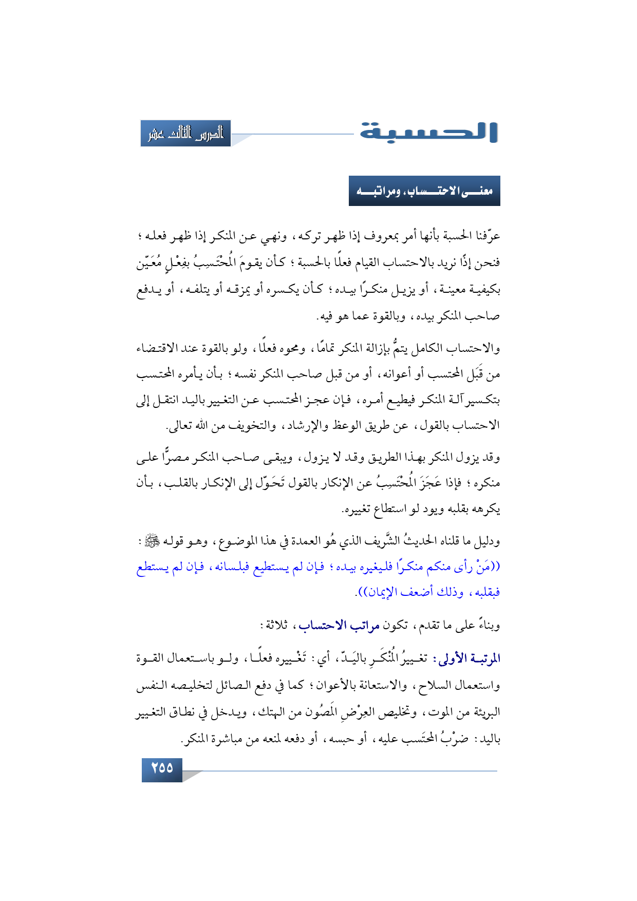 وبناء على ما تقدم تكون مراتب الاحتساب أو درجاته ثلاثة: