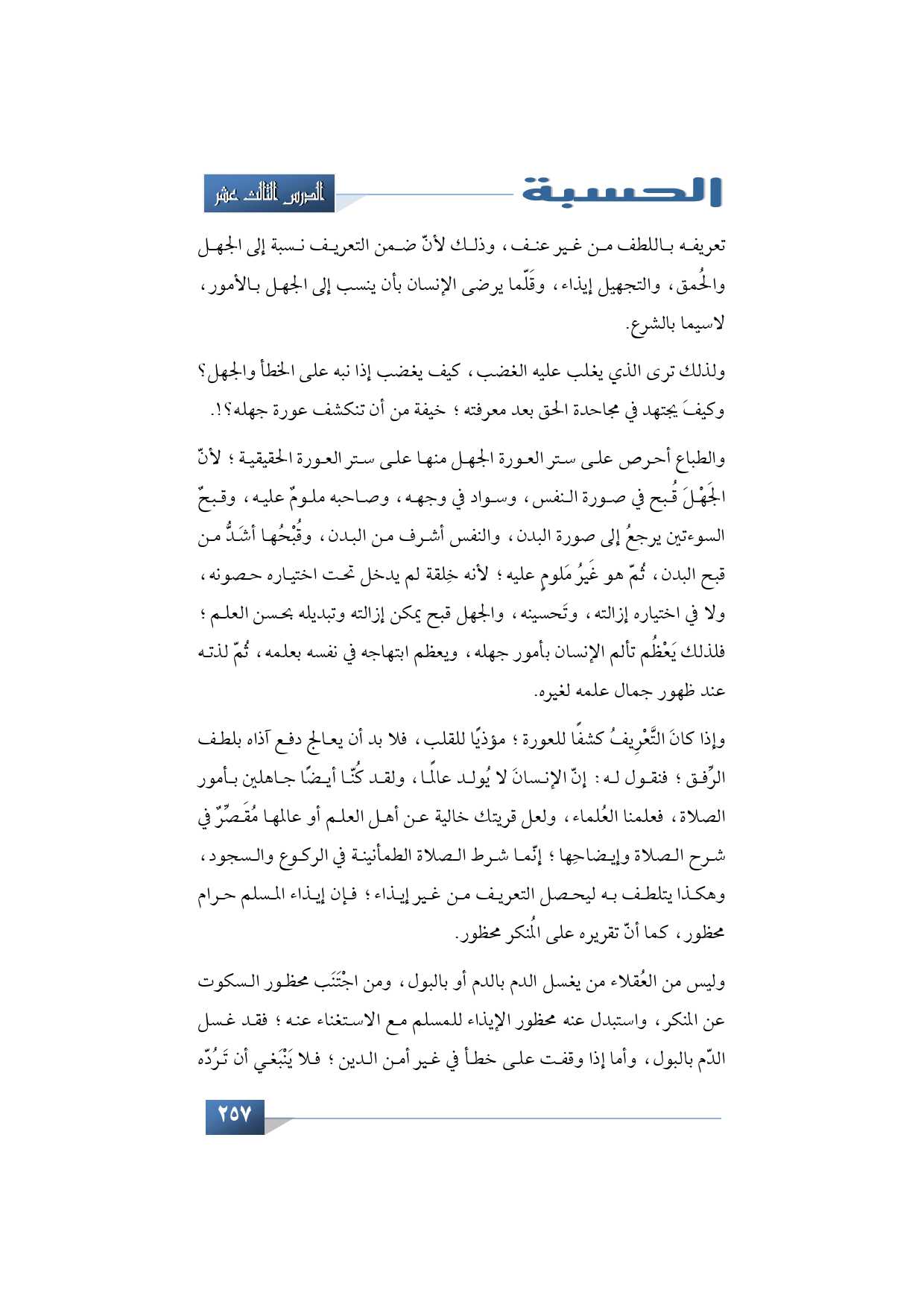تعريفه باللطف من غير عنف، وذلك لأنّ ضمن التعريف نسبة إلى الجهل والحُمق، والتجهيل إيذاء، وقَلّما يرضى الإنسان بأن ينسب إلى الجهل بالأمور لا سيما بالشرع.