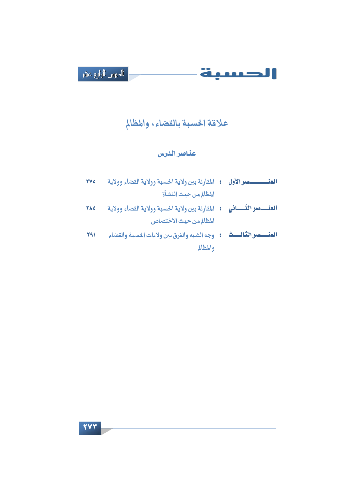 الدرس: 14 علاقة الحسبة بالقضاء والمظالم.