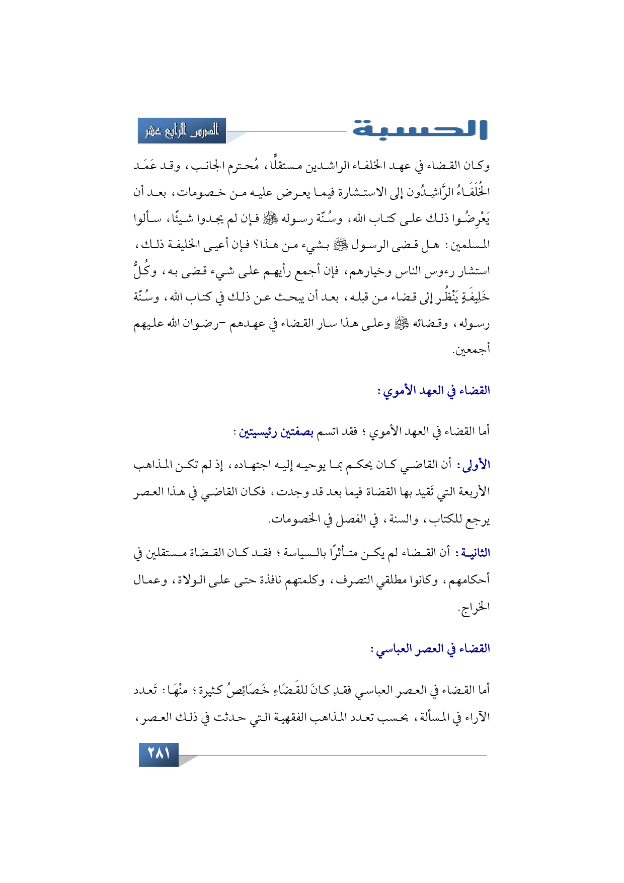 أما القضاء في العهد الأموي؛ فقد اتسم بصفتين رئيسيتين: