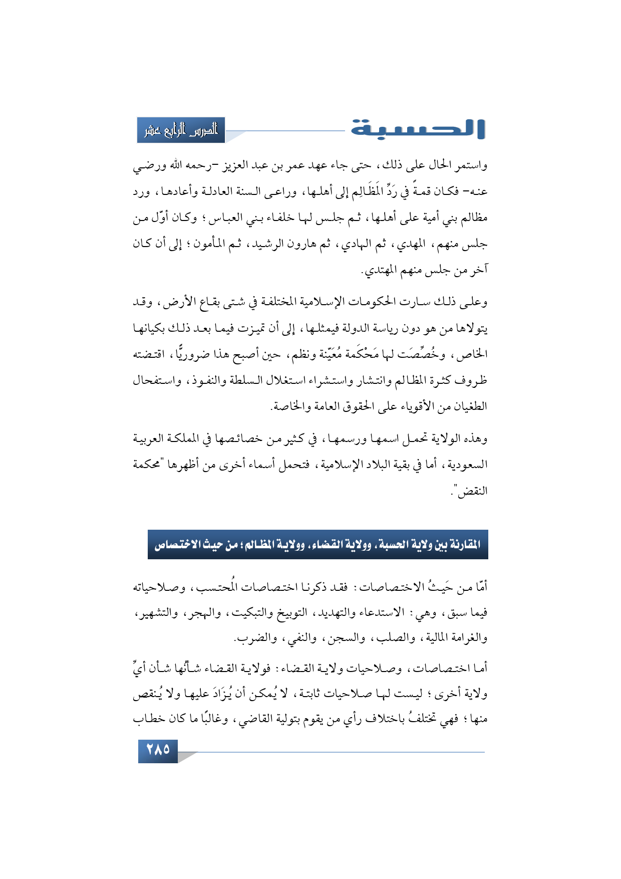 المقارنة بين ولاية الحسبة وولاية القضاء وولاية المظالم من حيث الاختصاص