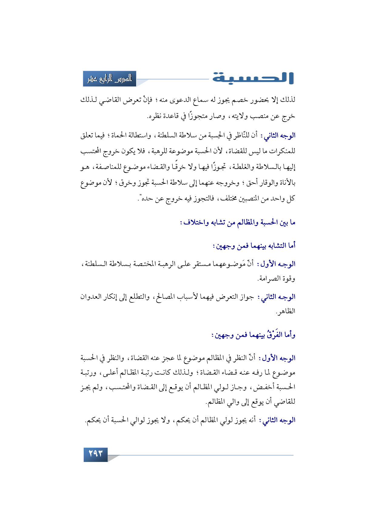 وأما ما بين الحِسْبة والمظالم فبينهما شبه مؤتلف، وفرق مختلف؛ فأما الشبه الجامع بينهما فمن وجهين: