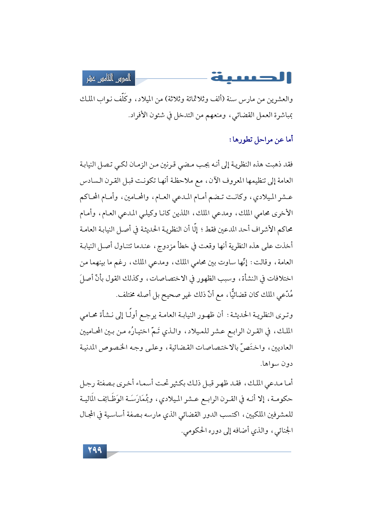 أما مدعي الملك فقد ظهر قبل ذلك بكثير تحت أسماء أخرى بصفة رجل حكومة، إلا أنه في القرن الرابع عشر الميلادي، وبمُمَارَسَة الوَظَائِف المَالية المشرفين الملكيين، اكتسب الدور القضائي الذي مارسه بصفة أساسية في المجال الجنائي، والذي أضافه إلى دوره الحكومي.