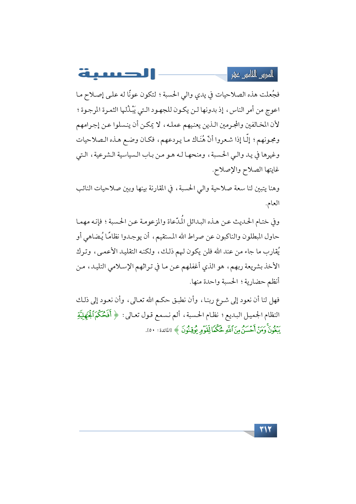 فهل لنا أن نعود إلى شرع ربنا، وأن نطبق حكم الله -سبحانه وتعالى- وأن نعود إلى ذلك النظام الجميل البديع نظام الحسبة، ألم نسمع قول الله -تبارك وتعالى-: {أَفَحُكْمَ الْجَاهِلِيَّةِ يَبْغُونَ وَمَنْ أَحْسَنُ مِنَ اللَّهِ حُكْمًا لِقَوْمٍ يُوقِنُونَ} (المائدة: 50).