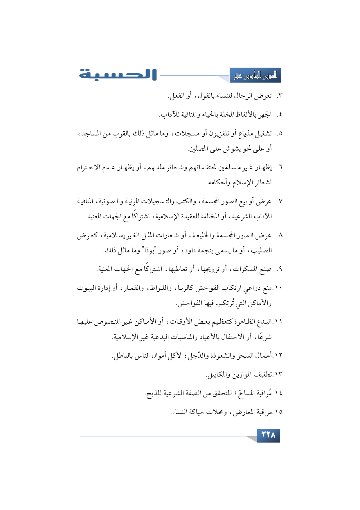 7 - عرض أو بيع الصور المجسمة والكتب والتسجيلات المرئية والصوتية، المنافية للآداب الشرعية، أو المخالفة للعقيدة الإسلامية اشتراكًا مع الجهات المعنية.