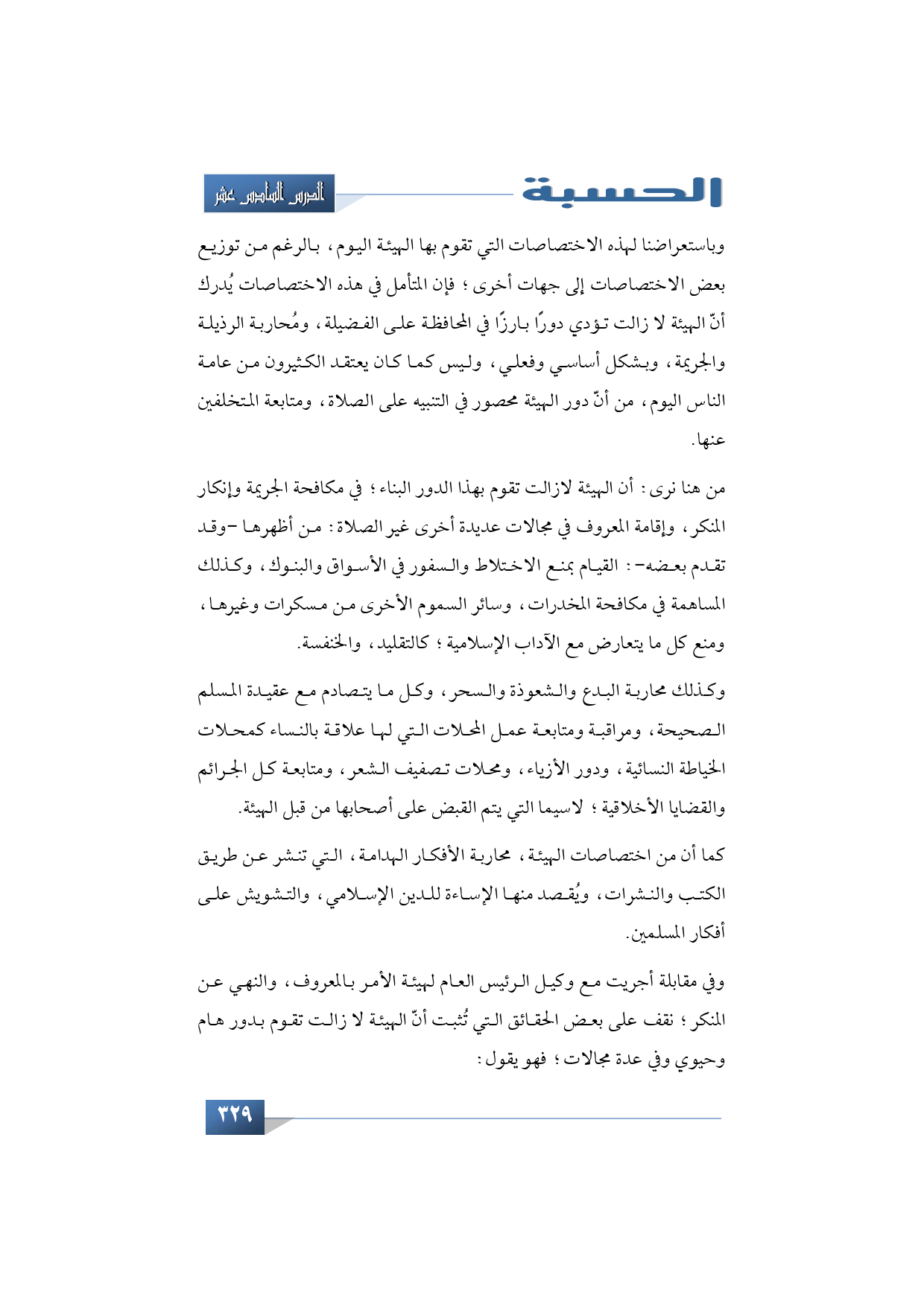 وفي مقابلة أجريت مع وكيل الرئيس العام لهيئة الأمر بالمعروف والنهي عن المنكر؛ نقف على بعض الحقائق التي تُثبت أنّ الهيئة لا زالت تقوم بدور هام وحيوي وفي عدة مجالات؛ فهو يقول: