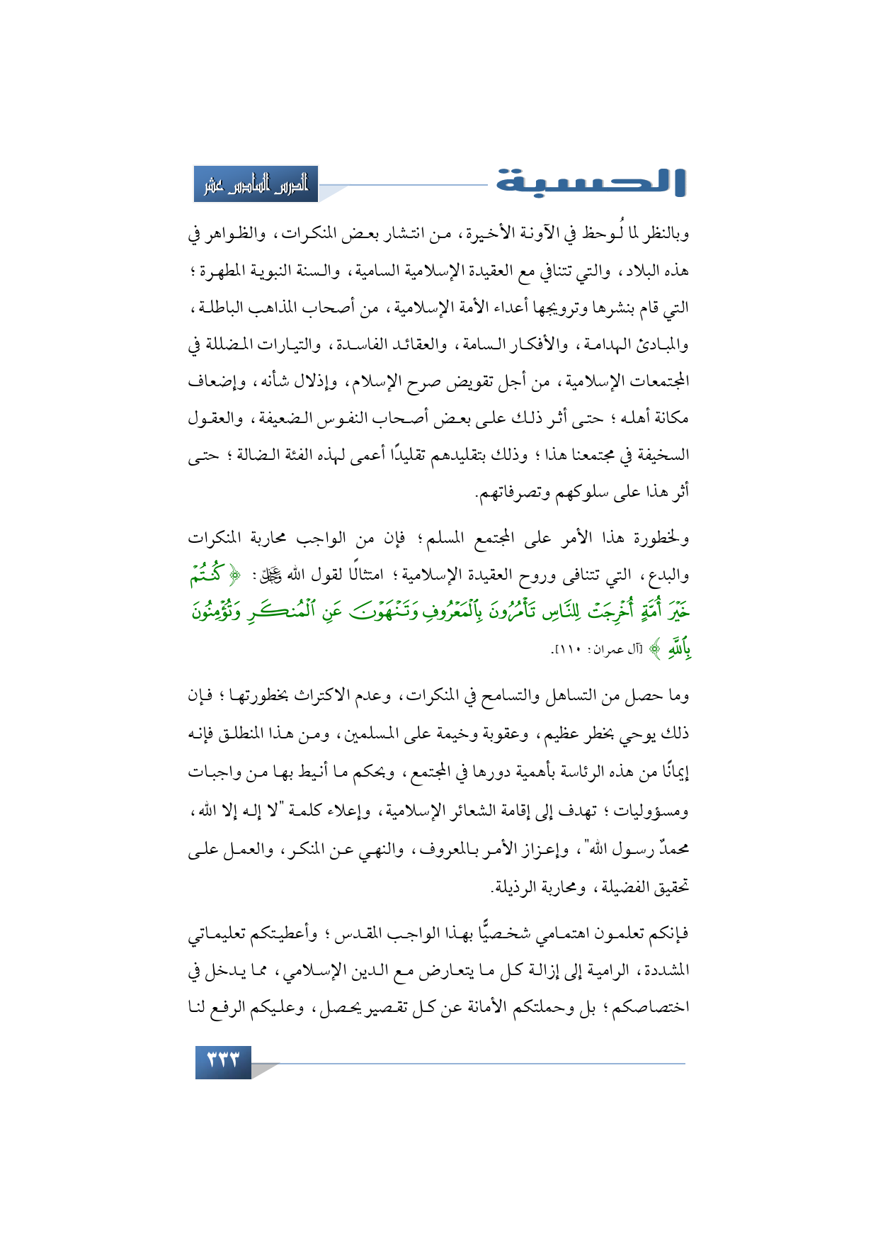 وبالنظر لما لُوحظ في الآونة الأخيرة من انتشار بعض المنكرات، والظواهر في هذه البلاد، والتي تتنافي مع العقيدة الإسلامية السامية، والسنة النبوية المطهرة؛ التي قام بنشرها وترويجها أعداء الأمة الإسلامية، من أصحاب المذاهب الباطلة، والمبادئ الهدامة، والأفكار السامة والعقائد الفاسدة، والتيارات المضللة في المجتمعات الإسلامية، من أجل تقويض صرح الإسلام، وإذلال شأنه، وإضعاف مكانة أهله؛ حتى أثر ذلك على بعض أصحاب النفوس الضعيفة، والعقول السخيفة في مجتمعنا هذا؛ وذلك في تقليدهم تقليدًا أعمى لهذه الفئة الضالة؛ حتى أثر هذا على سلوكهم وتصرفاتهم.