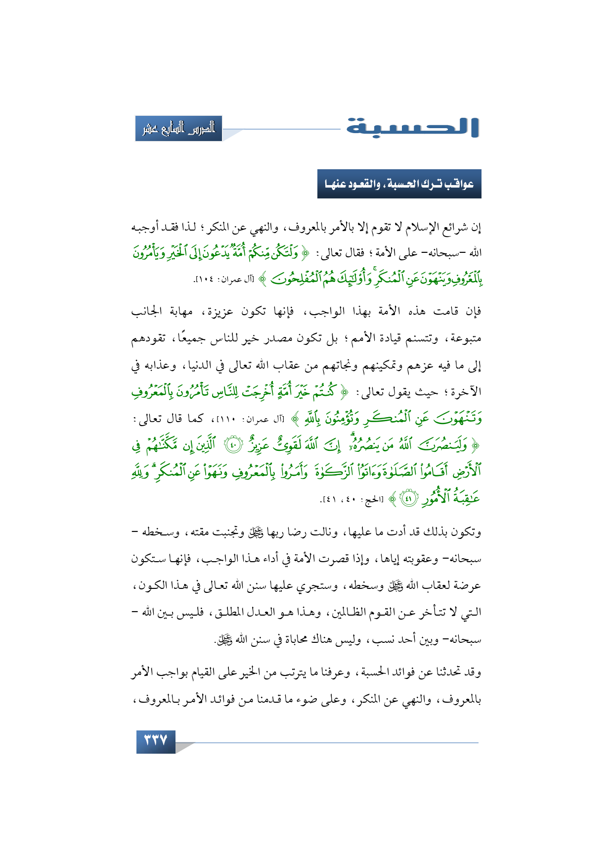 (الآثار المترتبة على ترك المسلمين الحسبة)