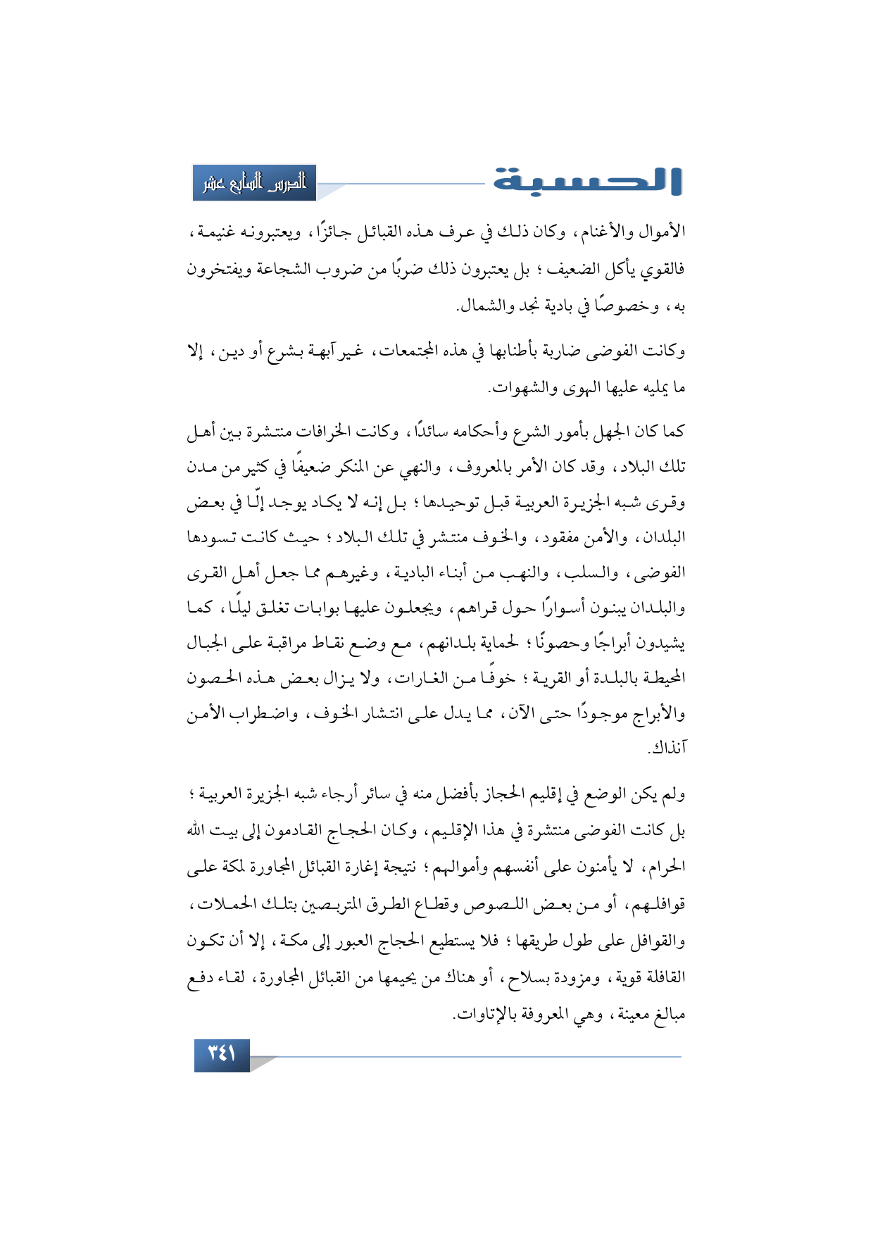 الأموال والأغنام، وكان ذلك في عرف هذه القبائل جائزًا ويعتبرونه غنيمة، فالقوي يأكل الضعيف، بل يعتبرون ذلك ضربًا من ضروب الشجاعة ويفتخرون به، وخصوصًا في بادية نجد والشمال.