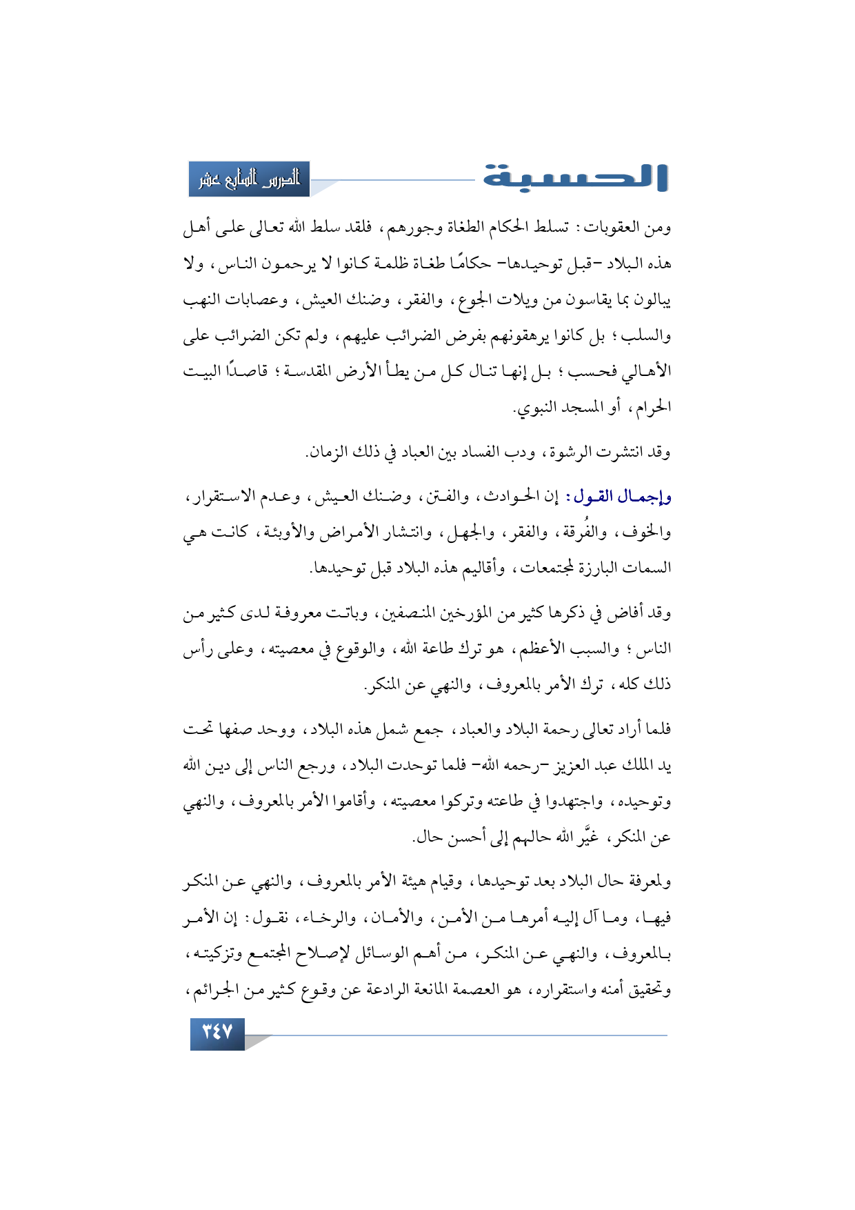 ولمعرفة حال البلاد بعد توحيدها، وقيام هيئة الأمر بالمعروف والنهي عن المنكر فيها، وما آل إليه أمرها من الأمن والأمان والرخاء نقول: إن الأمر بالمعروف والنهي عن المنكر من أهم الوسائل لإصلاح المجتمع وتزكيته، وتحقيق أمنه واستقراره هو العصمة المناعة الرادعة عن وقوع كثير من الجرائم
