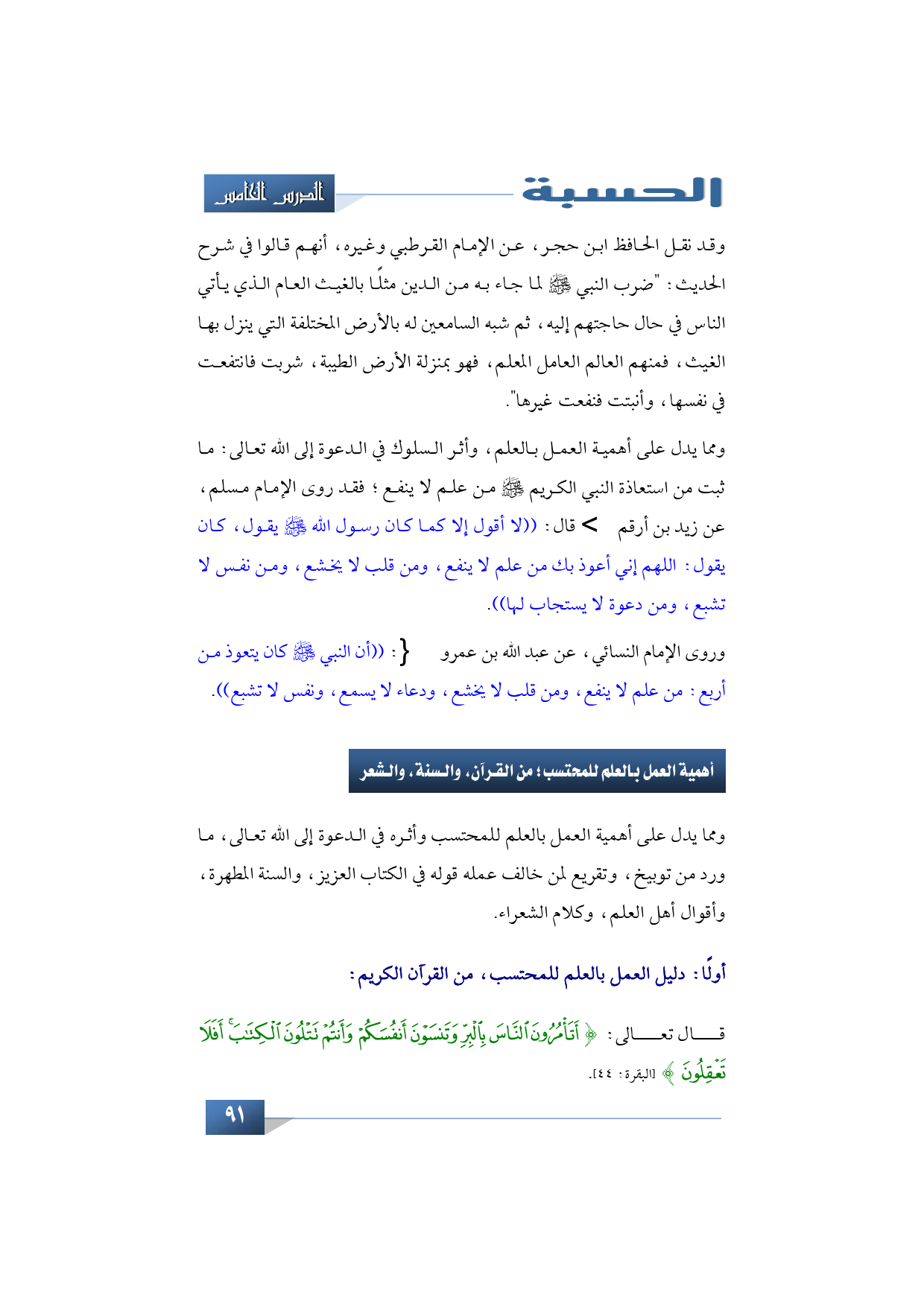أهمية العمل بالعلم للمحتسب من القرآن والسنة والشعر