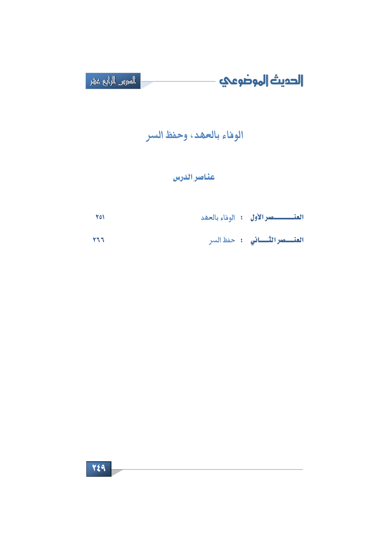 الدرس: 14 الوفاء بالعهد، وحفظ السر.