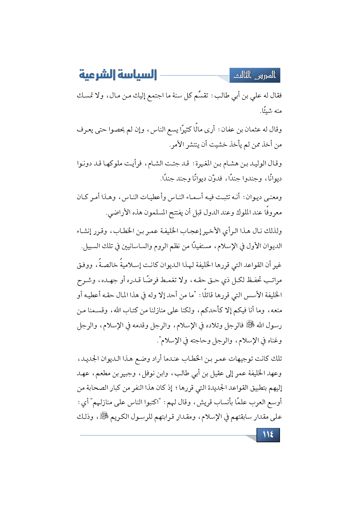 وقال الوليد بن هشام بن المغيرة: قد جئت الشام، فرأيت ملوكها قد دونوا ديوانًا، وجندوا جندًا، فدون ديوانًا وجند جندًا.