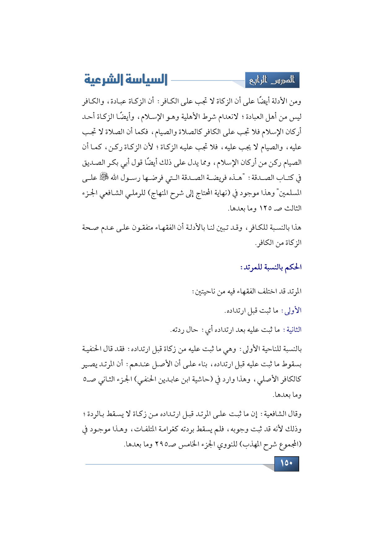 ومما يدل على ذلك أيضًا قول أبي بكر الصديق في كتاب الصدقة: "هذه فريضة الصدقة التي فرضها رسول الله -صلى الله عليه وسلم- على المسلمين" وهذا موجود في (نهاية المحتاج إلى شرح المنهاج) للرملي الشافعي الجزء الثالث صـ 125 وما بعدها.