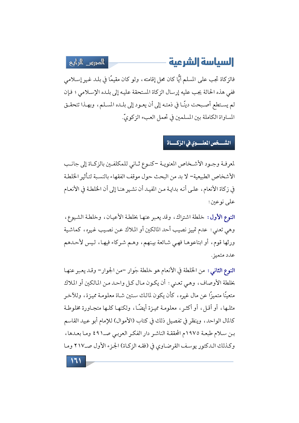 الخلطة في الأنعام كمثال للشخص المعنوي في الزكاة