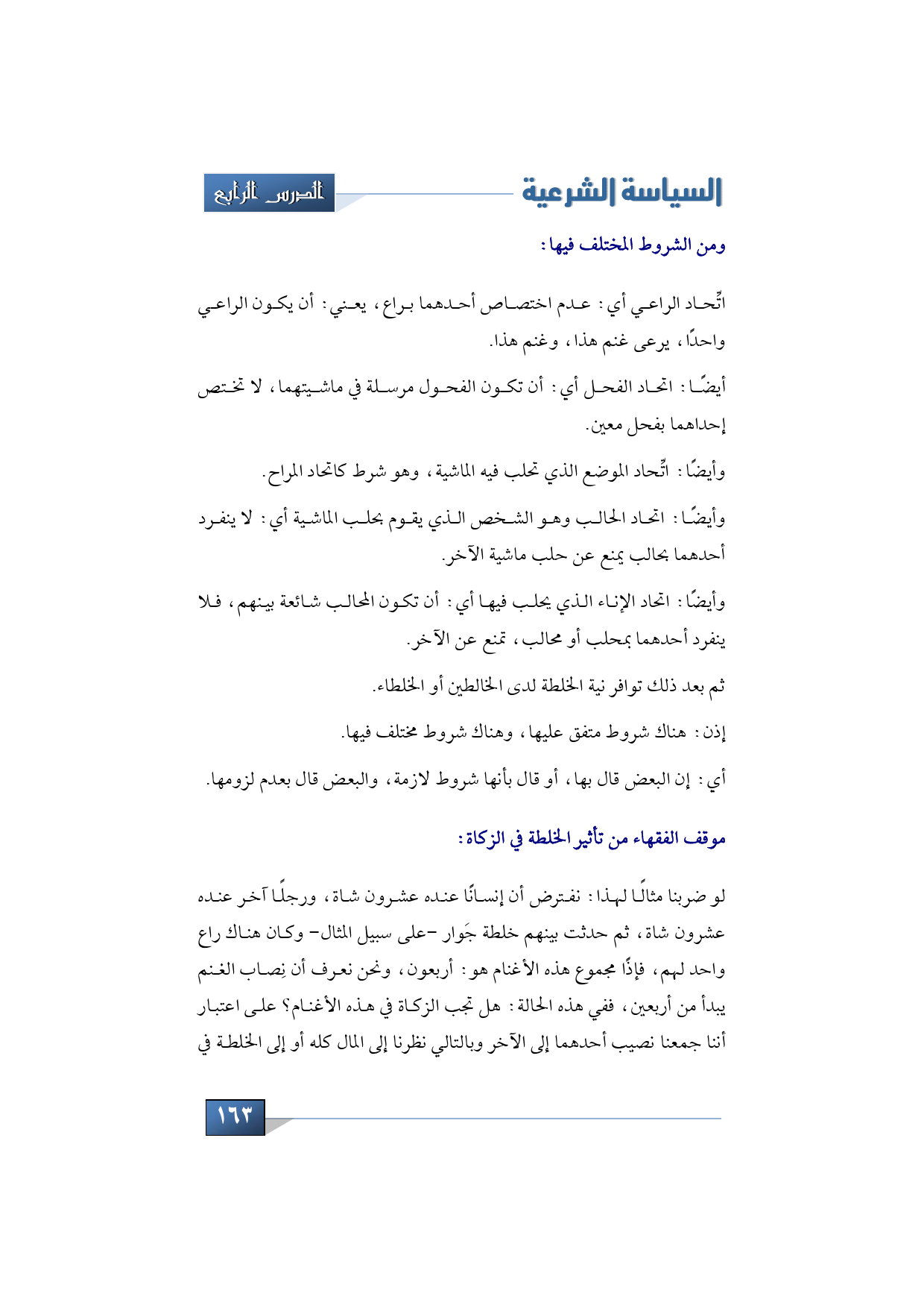 وأيضًا: اتحاد الحالب وهو الشخص الذي يقوم بحلب الماشية أي: لا ينفرد أحدهما بحالب يمنع عن حلب ماشية الآخر.