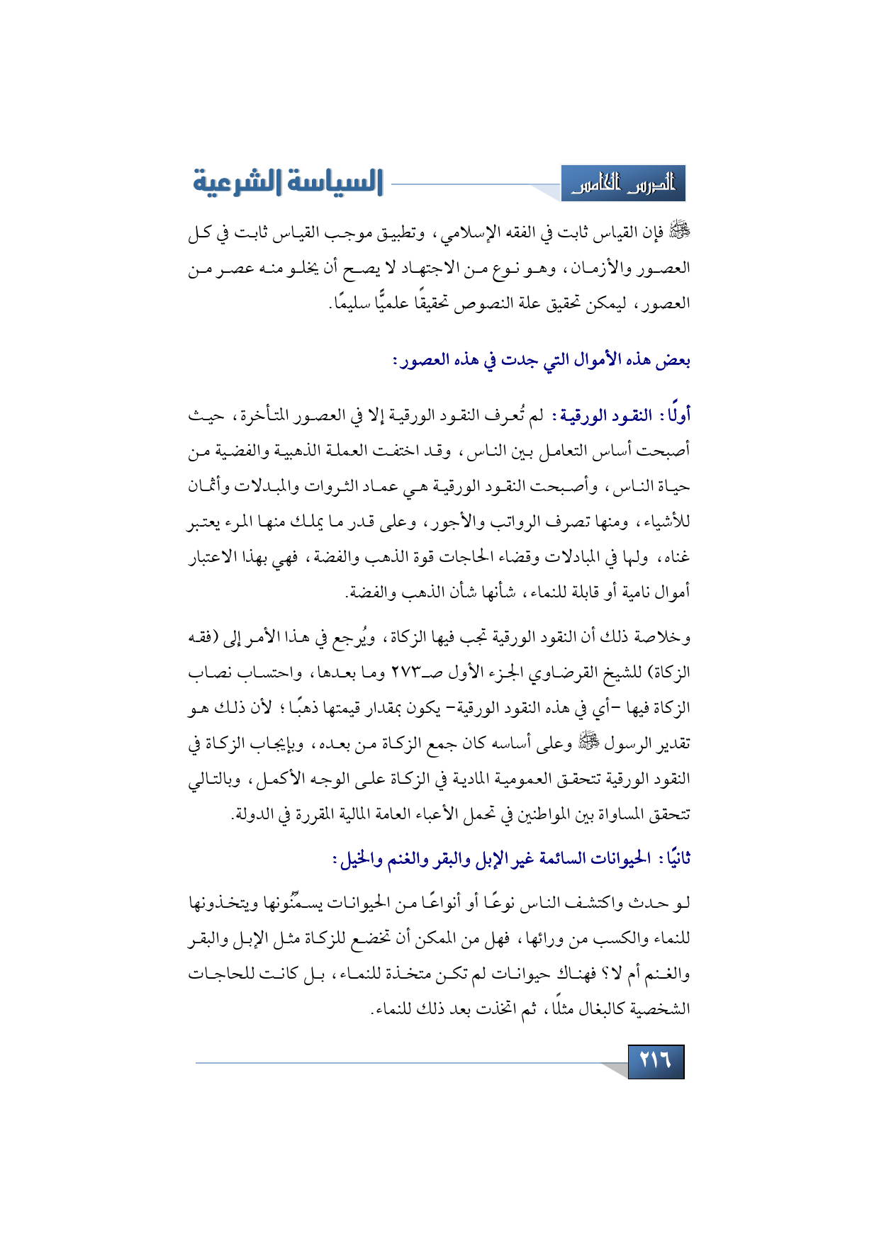 أيضًا من الأموال التي أصبحت نامية في هذه العصور الحيوانات السائمة غير الإبل والبقر والغنم والخيل، لو حدث واكتشف الناس نوعًا أو أنواعًا من الحيوانات يسمنونها ويتخذونها للنماء والكسب من ورائها، فهل من الممكن أن تخضع للزكاة مثل الإبل والبقر والغنم أم لا؟ فهناك حيوانات لم تكن متخذة للنماء، بل كانت للحاجات الشخصية كالبغال مثلًا، ثم اتخذت بعد ذلك للنماء.