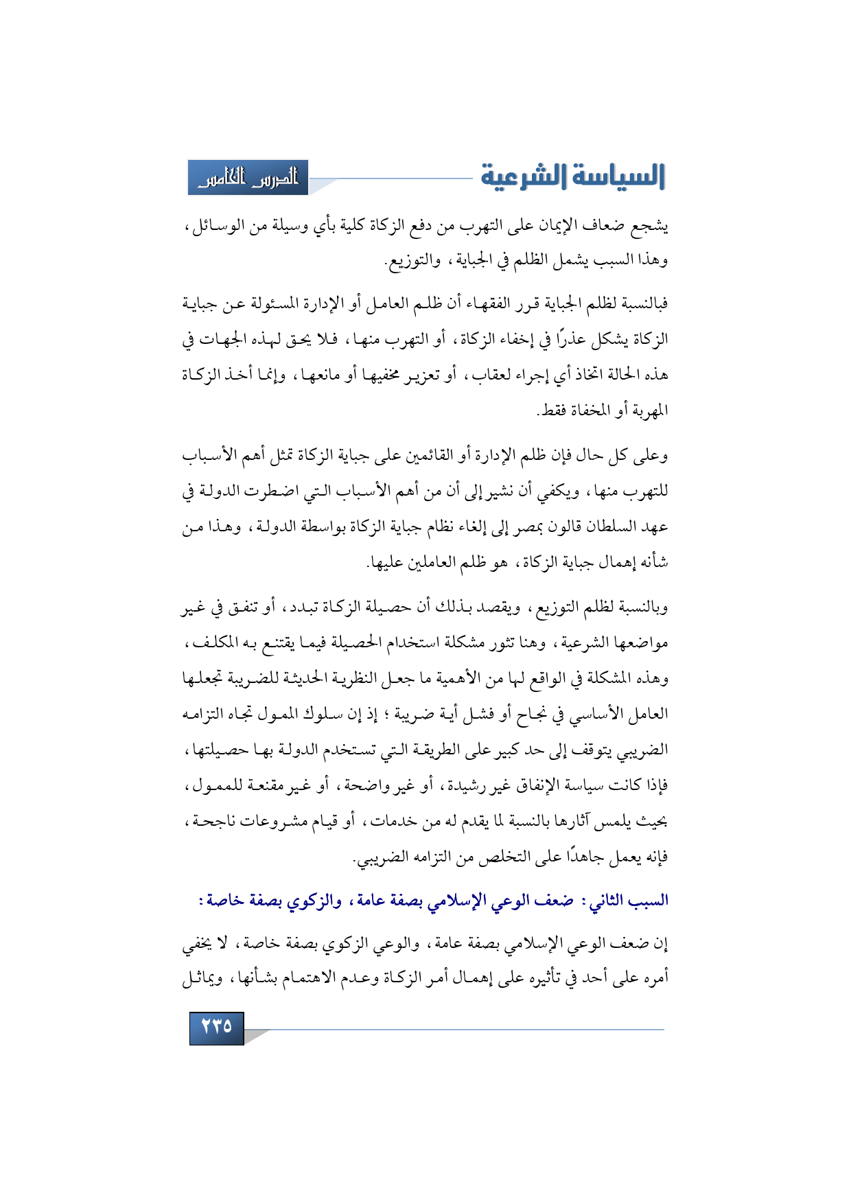 السبب الثاني: ضعف الوعي الإسلامي بصفة عامة, والزكوي بصفة خاصة: