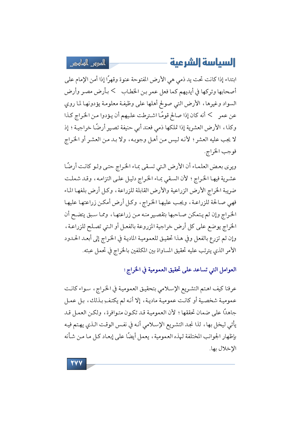 العوامل التي تساعد على تحقيق العمومية في الخراج